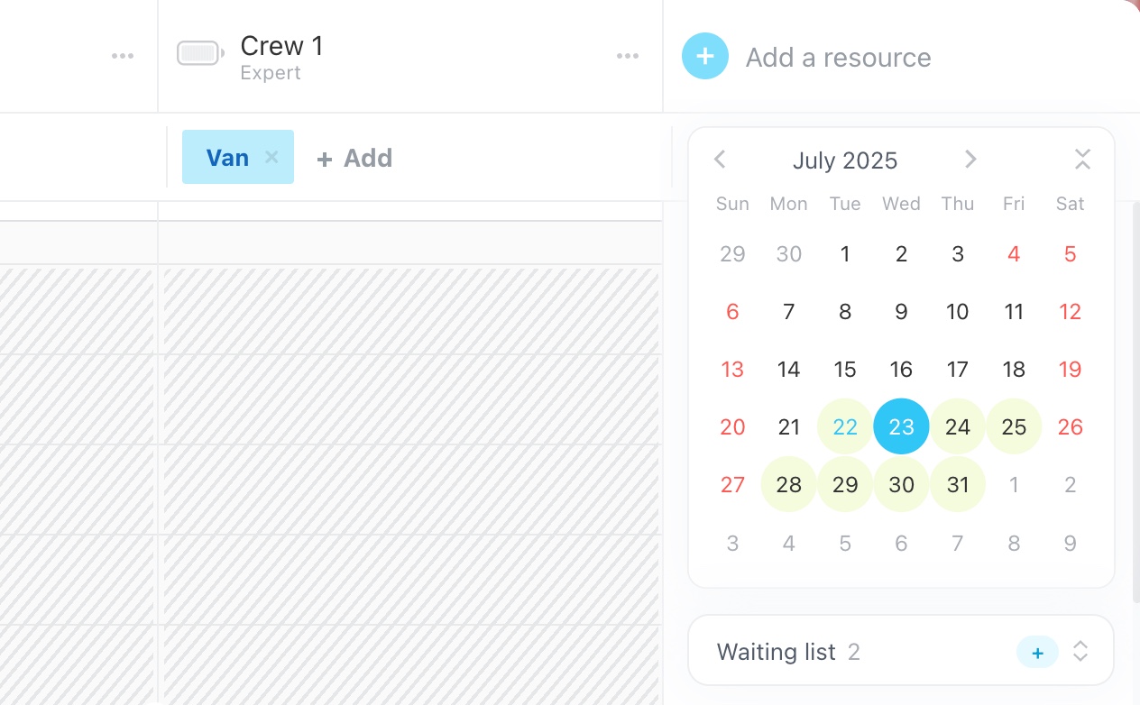 - Specialist + transport: Reserving an engineer and a company vehicle for fieldwork.