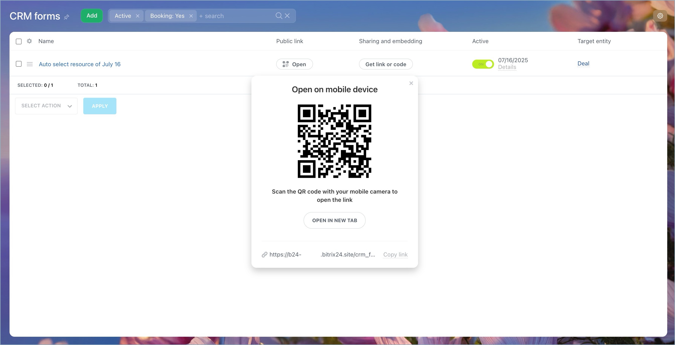 To access your created forms, go to Booking → Booking forms → All forms. There, you'll also find the code and public link needed to publish and share the form.