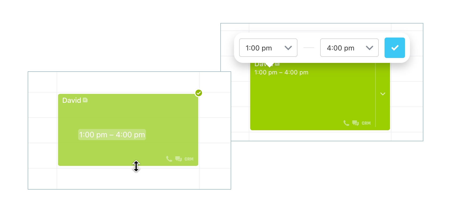 Once the customer confirms their booking, it turns green with a checkmark. In deals, booking activities will also appear in green. Bookings made less than 24 hours before the visit are automatically confirmed and shown as green.