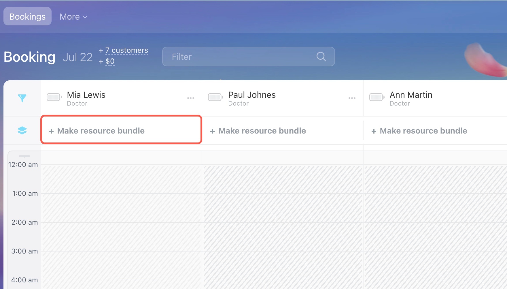 If multiple resources are needed for the booking (primary and additional), click + Make resource bundle to select an additional resource.