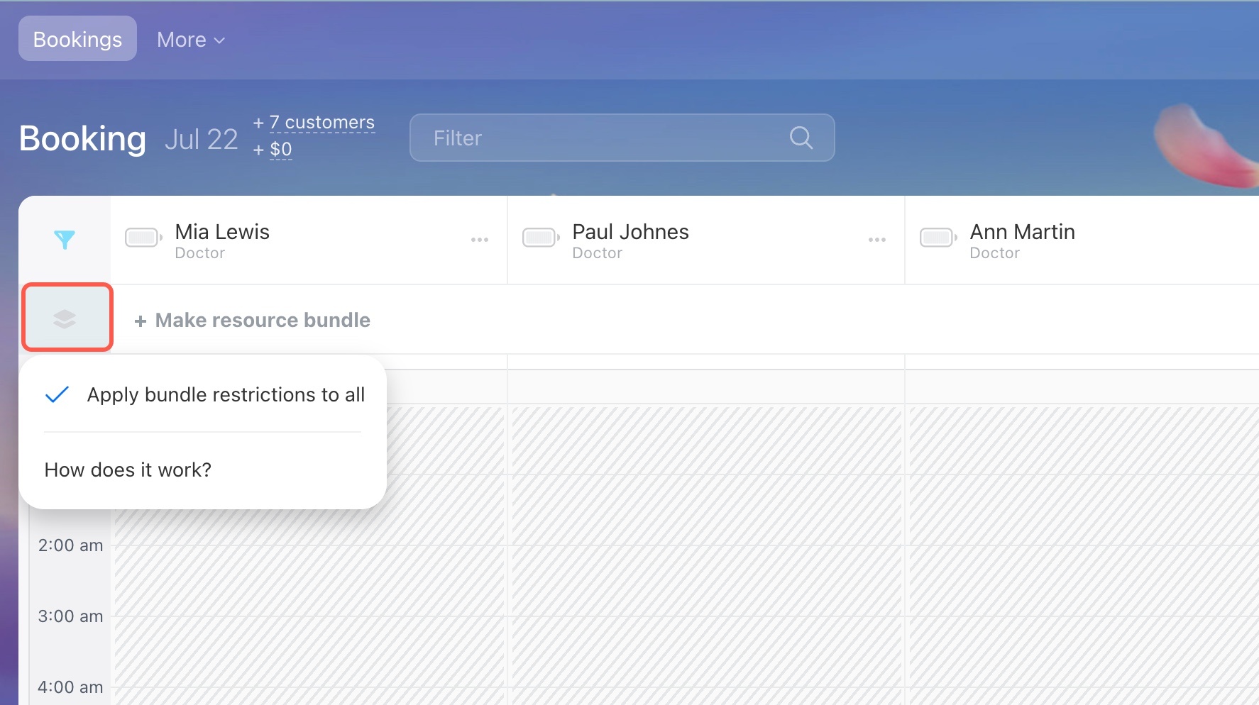 - + Overbooking: Add another booking to the same time slot.
