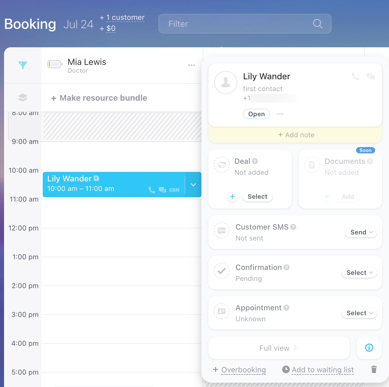 - Add to waiting list: Move the current booking to the waiting list.