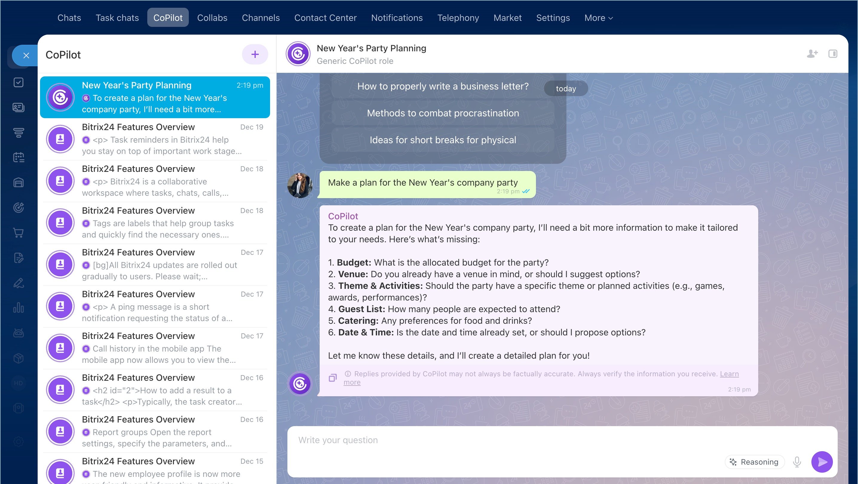 CoPilot has something called Reasoning, which is essentially a mode that allows AI for a deeper research before providing a reply. If there's not enough data, CoPilot will proactively ask additional questions.