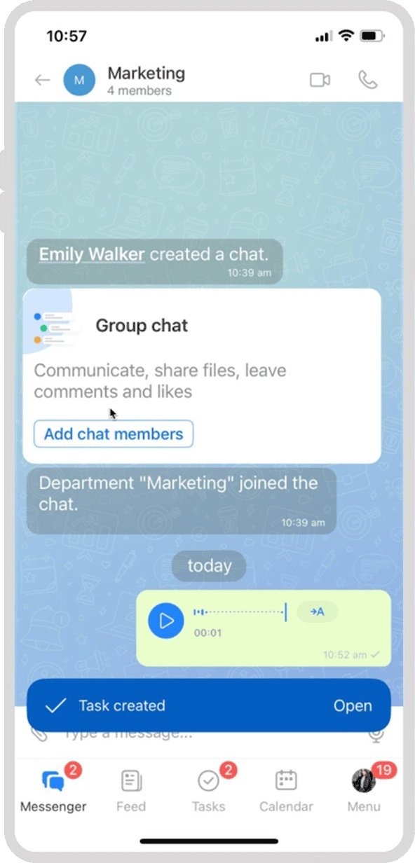 If you do a lot of voice messaging, CoPilot is also here to help. Any voice message sent to a chat can be automatically turned to text and/or task, based on its contents. Here's what CoPilot can do: