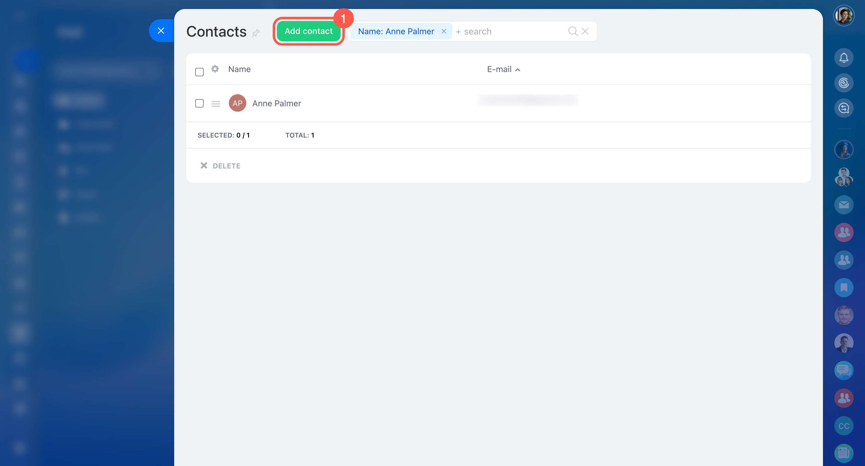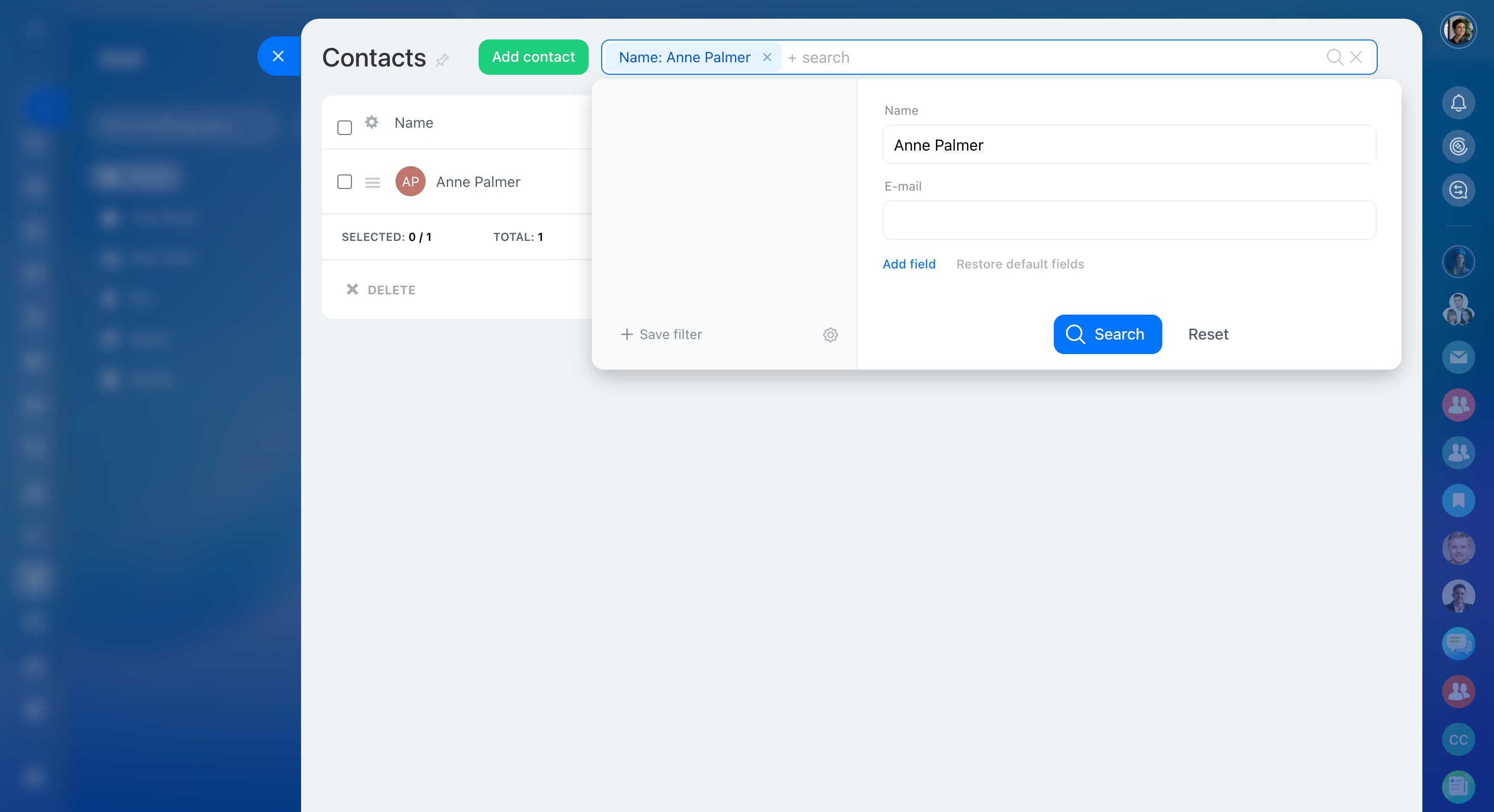Use search and filters to find a contact.