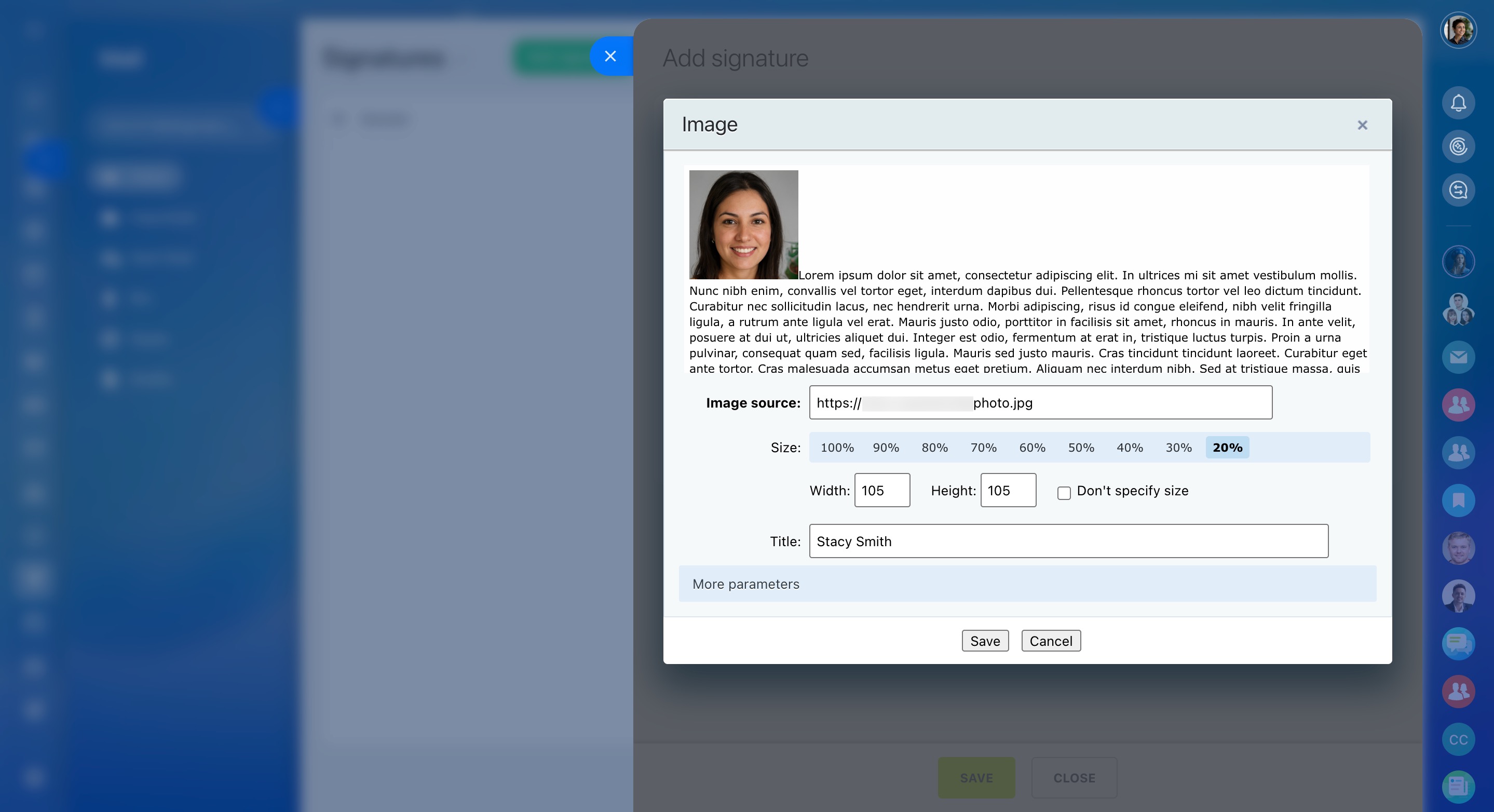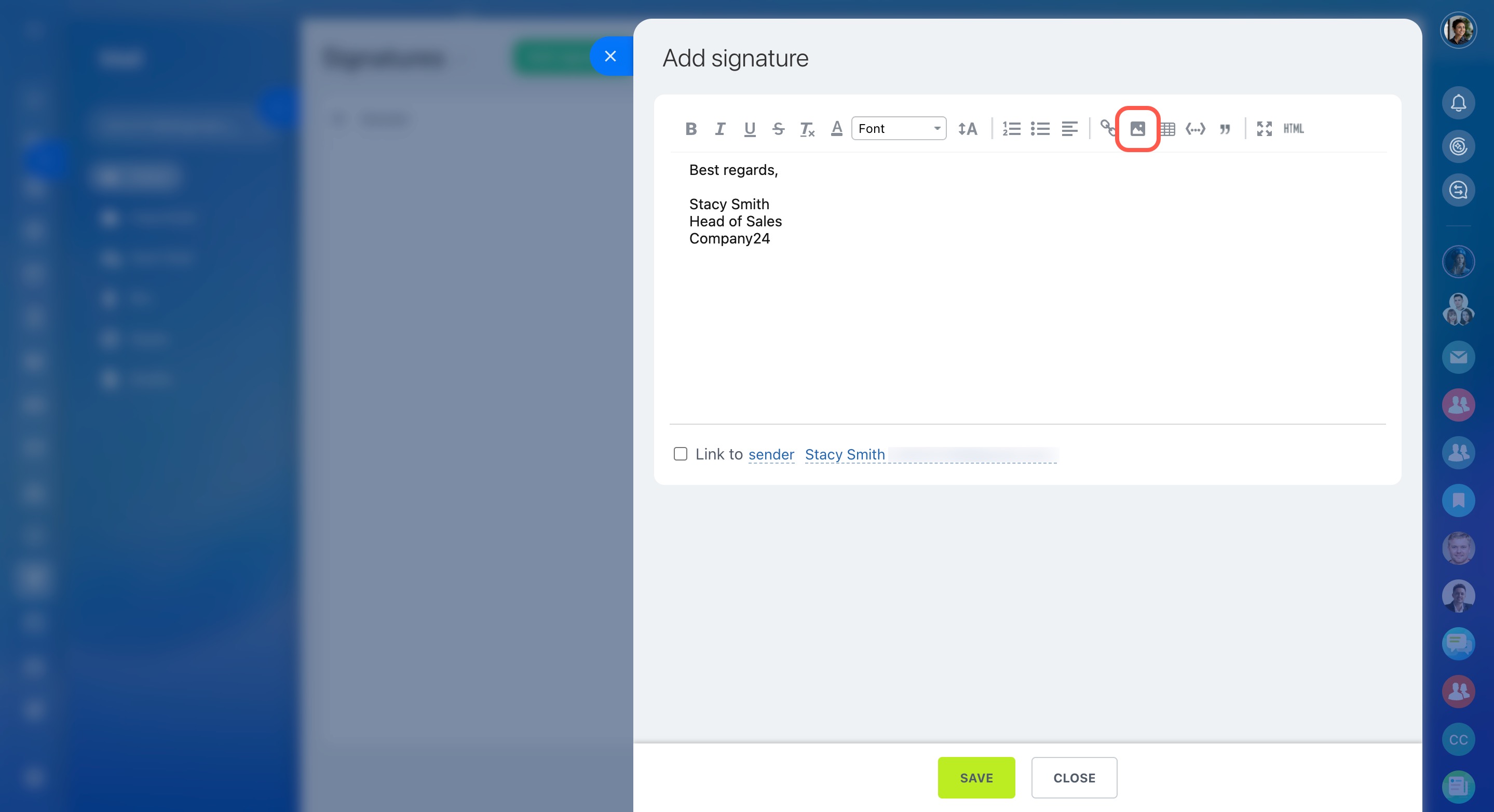 To add an image to your signature, click the corresponding button in the menu.