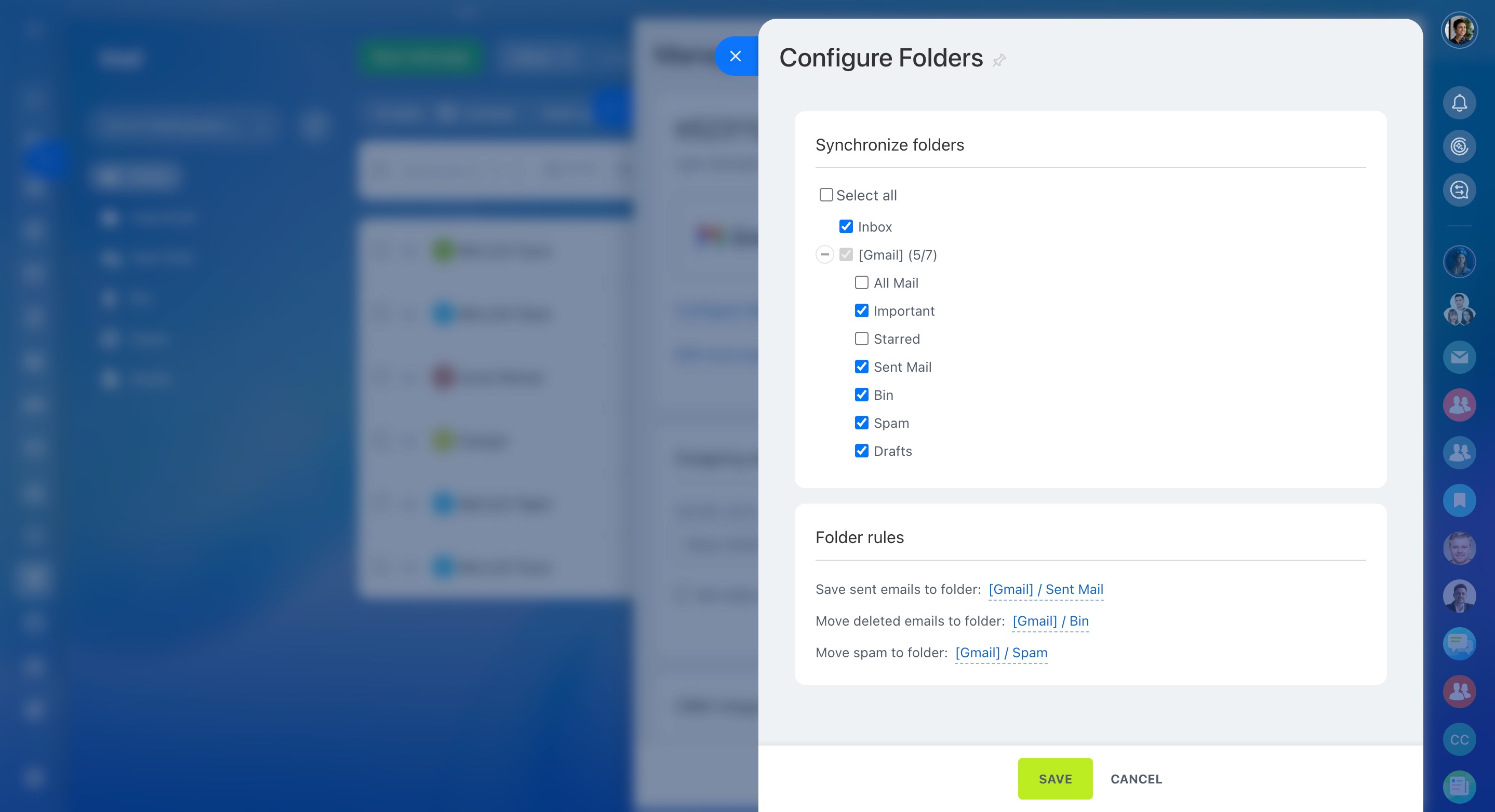 Configure folders for synchronization by clicking the corresponding button.