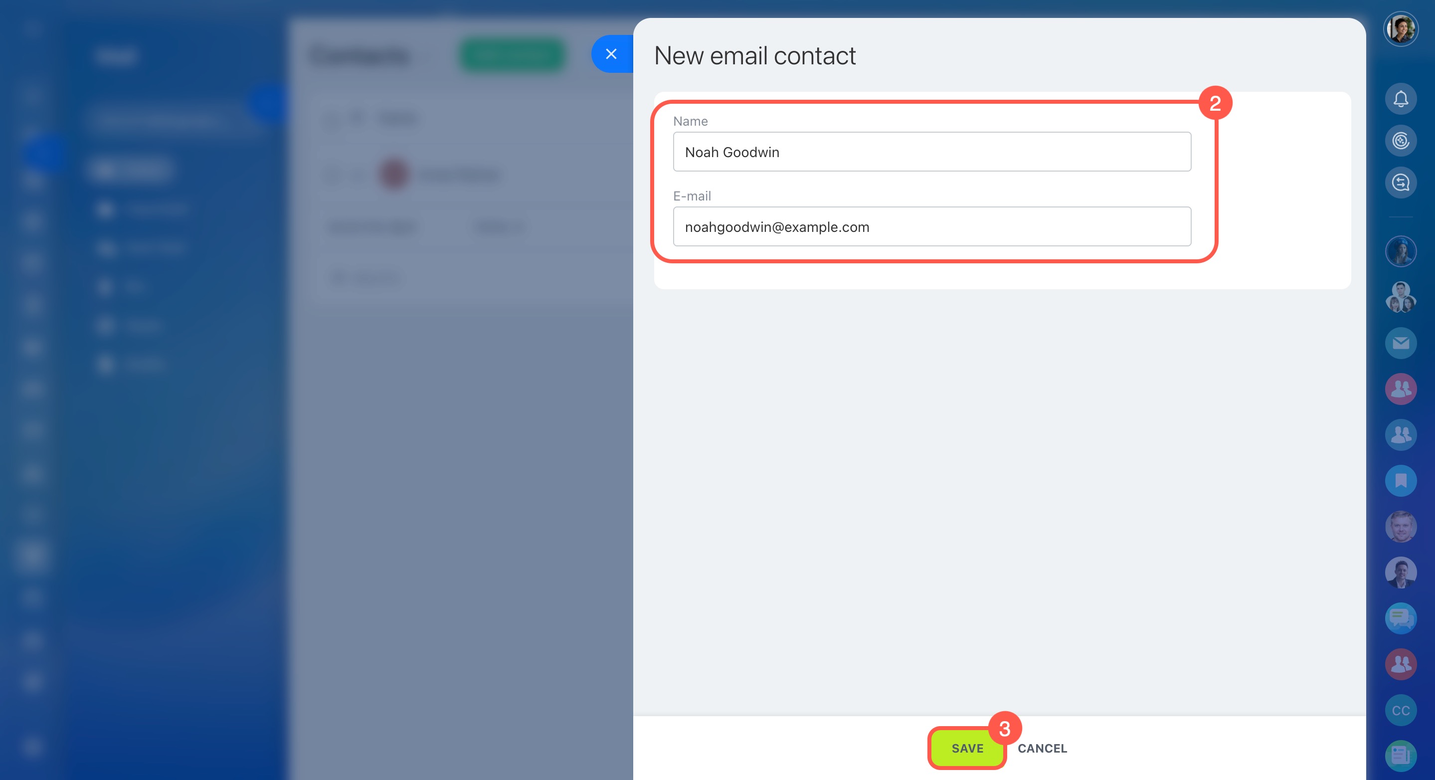 To add a contact manually, click Add contact and fill in the name and email.