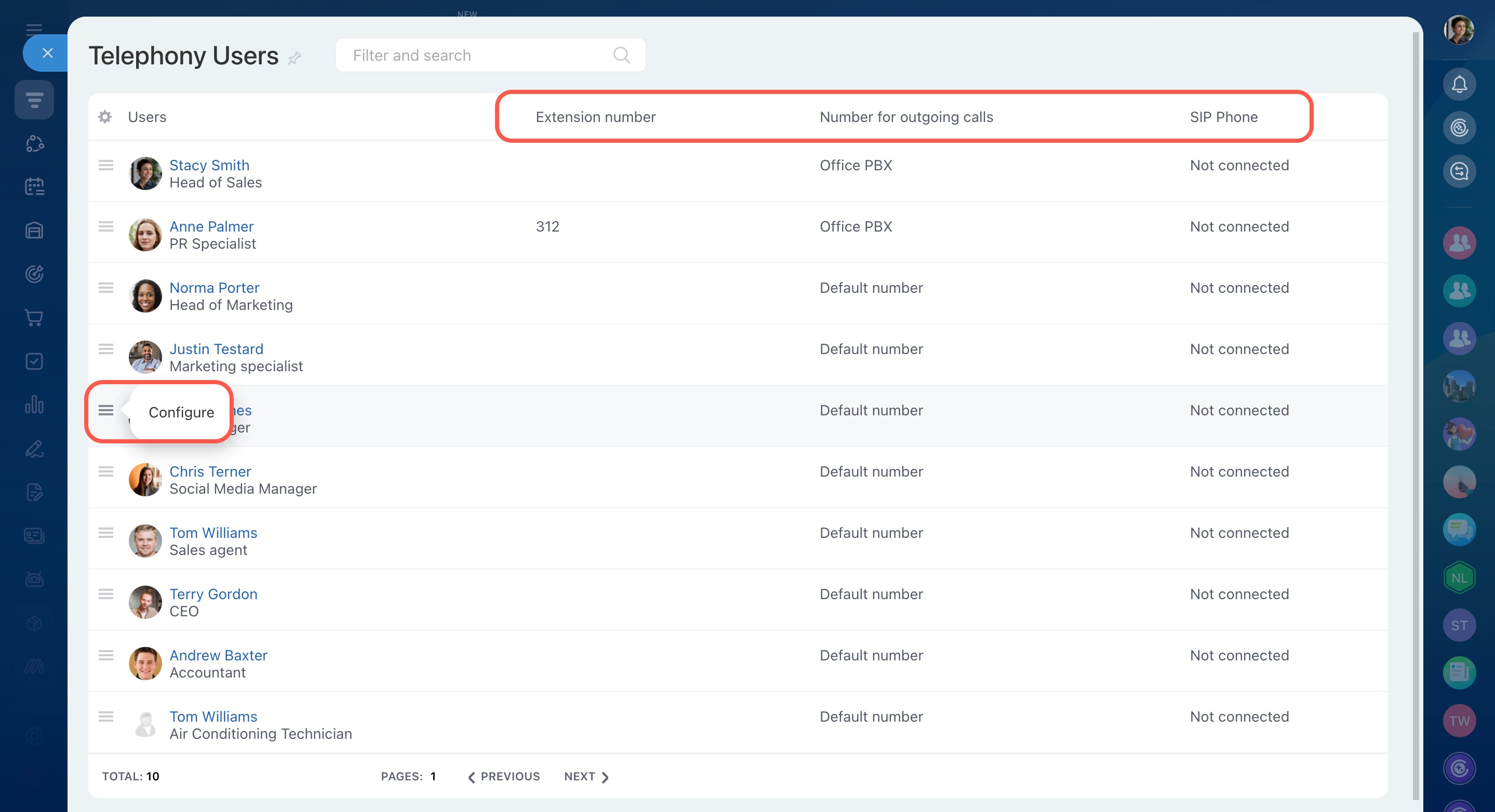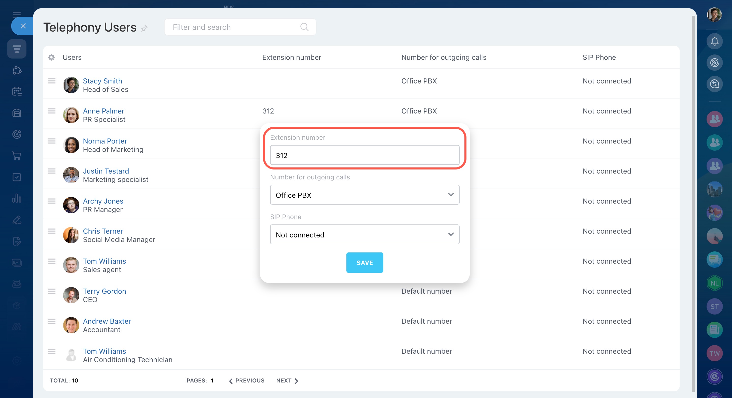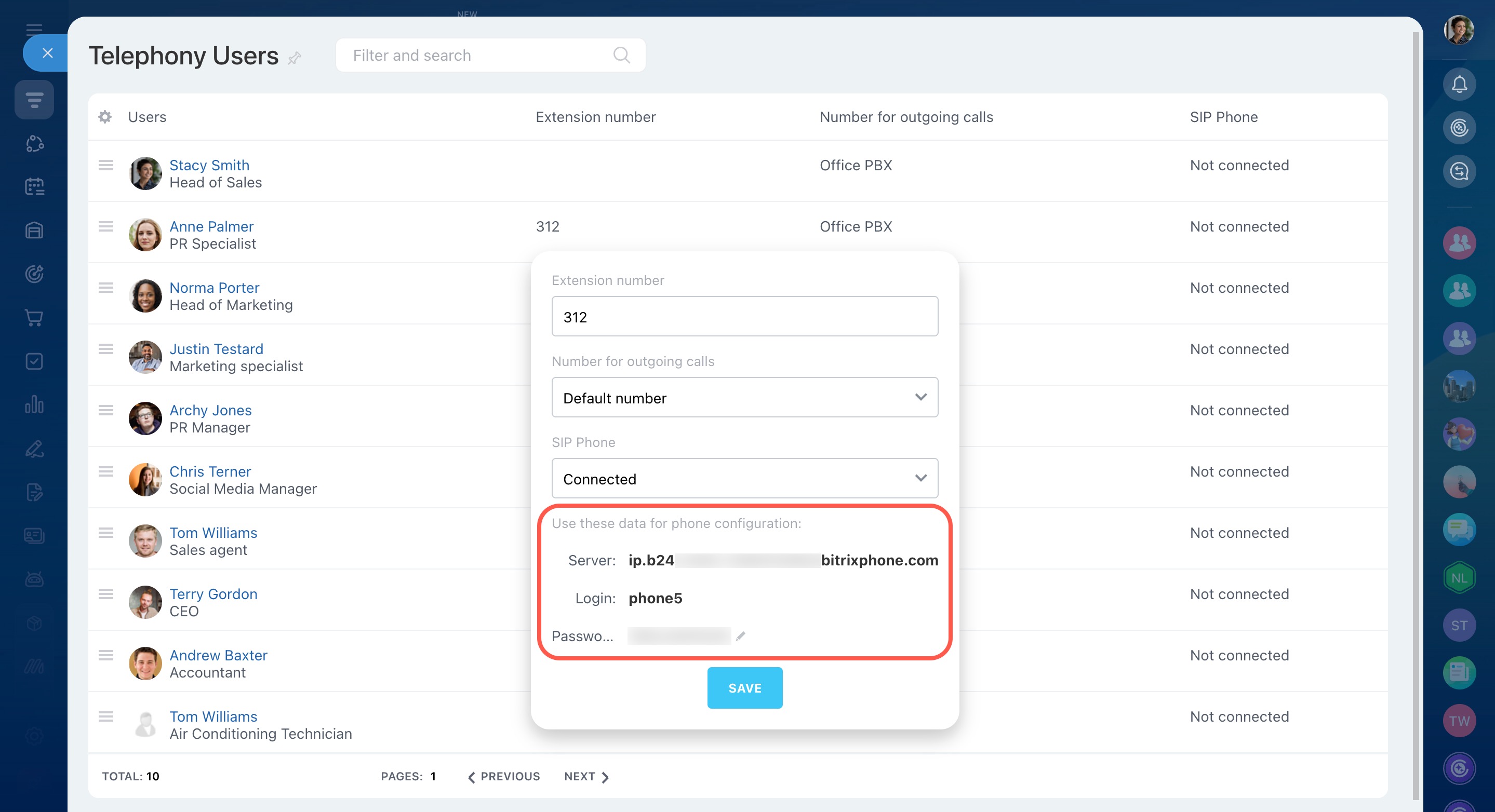 Facilitate internal communication among employees in Bitrix24 using extension numbers. Additionally, clients can directly reach specific employees by dialing their extensions.