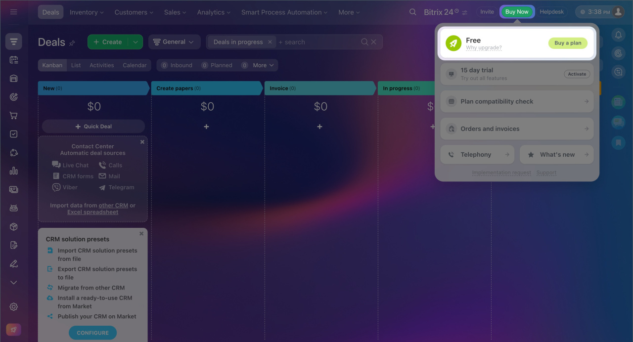 Upon your payment confirmation, your Bitrix24 account will be activated with the purchased subscription option automatically.