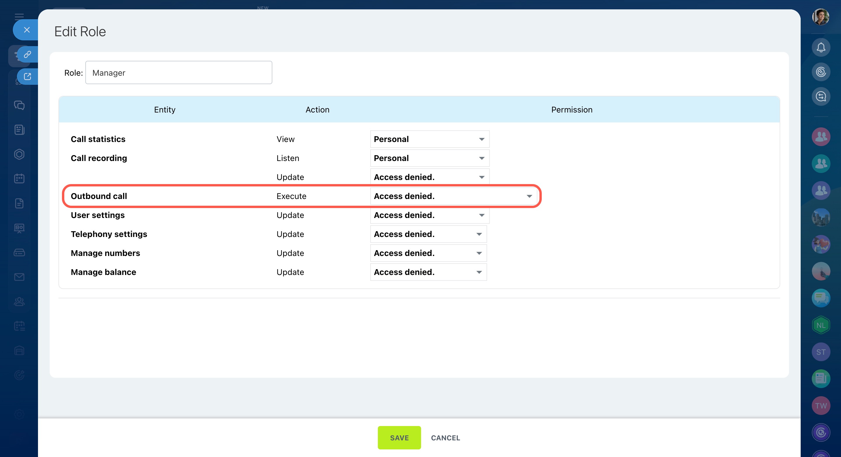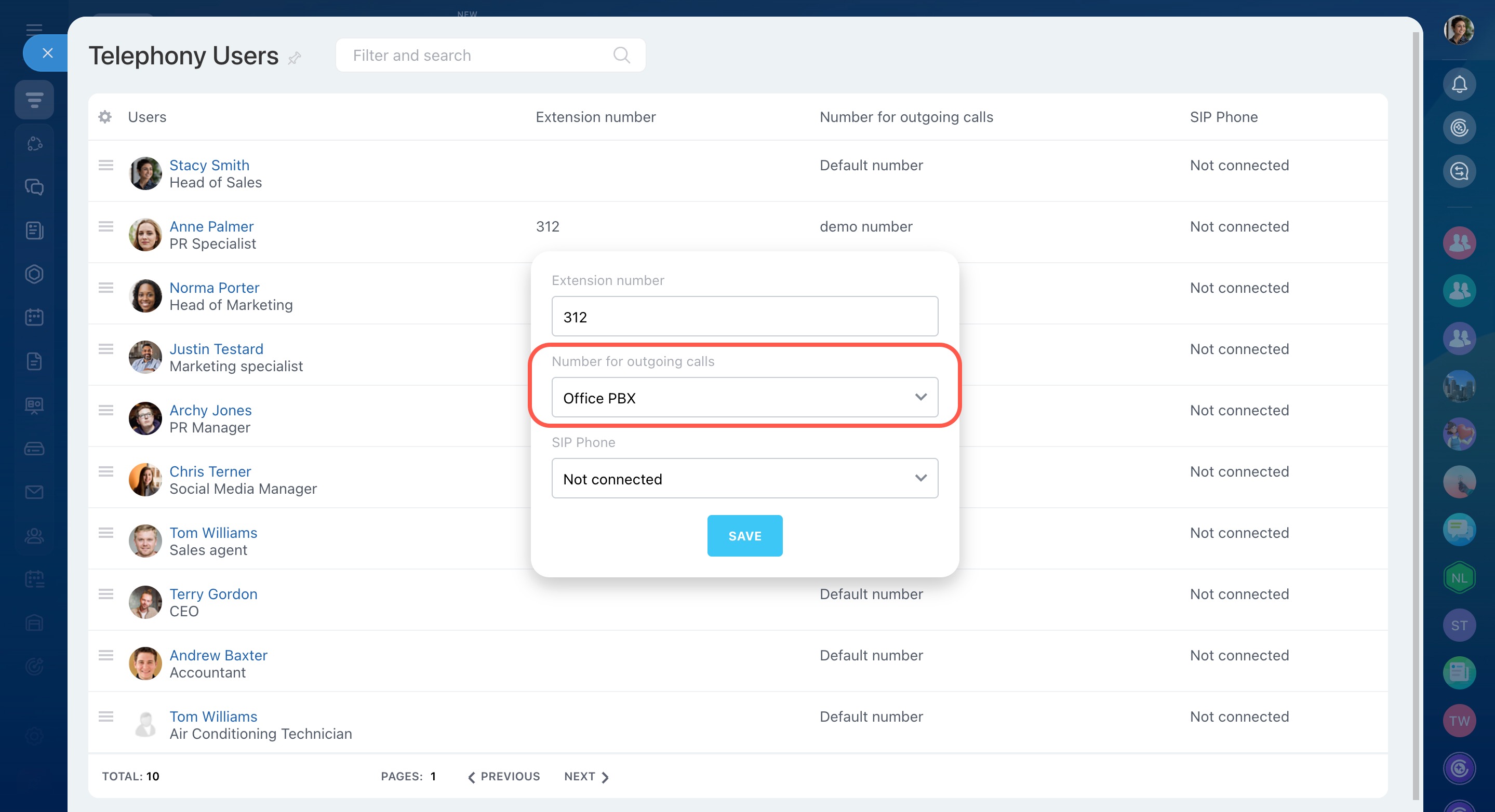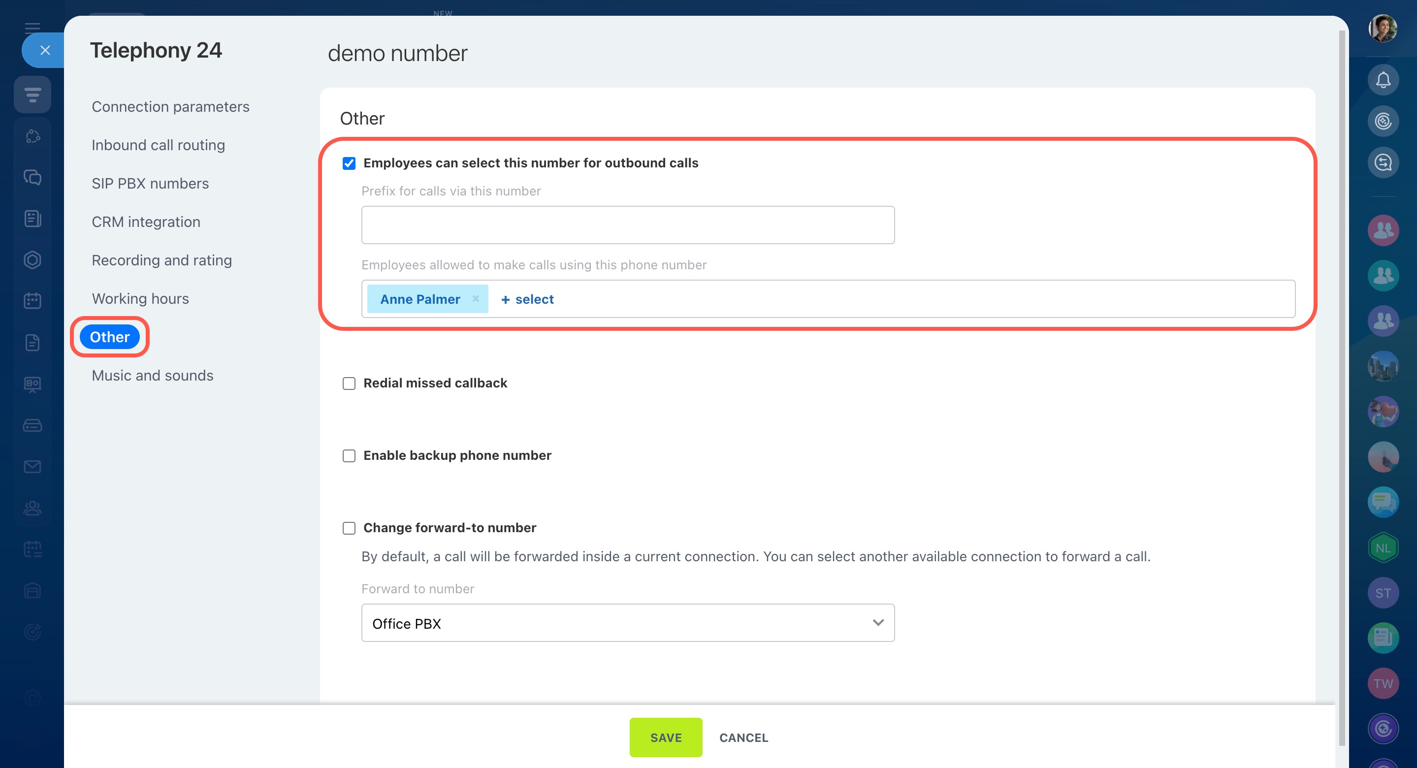 If you use several numbers in Bitrix24, you can set up different outgoing numbers for your employees. To apply individual settings, do the following: