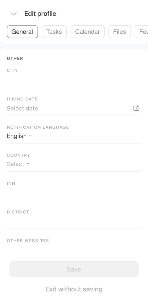 - Profile information can be edited at any time by the employee or the Bitrix24 administrator.