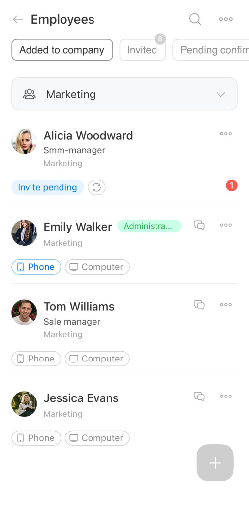 Employee role. An icon in the profile shows the employee's role in the company.
