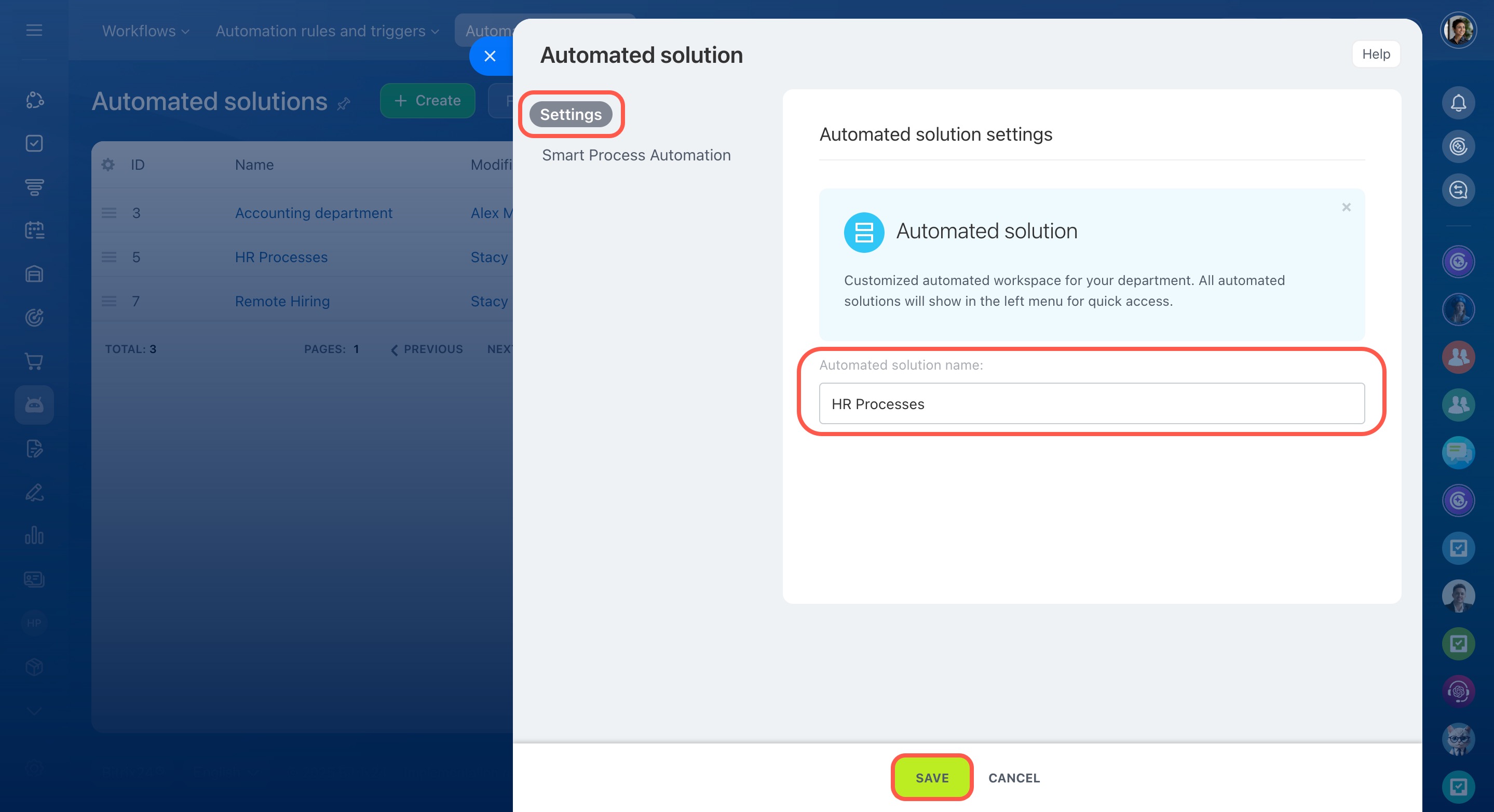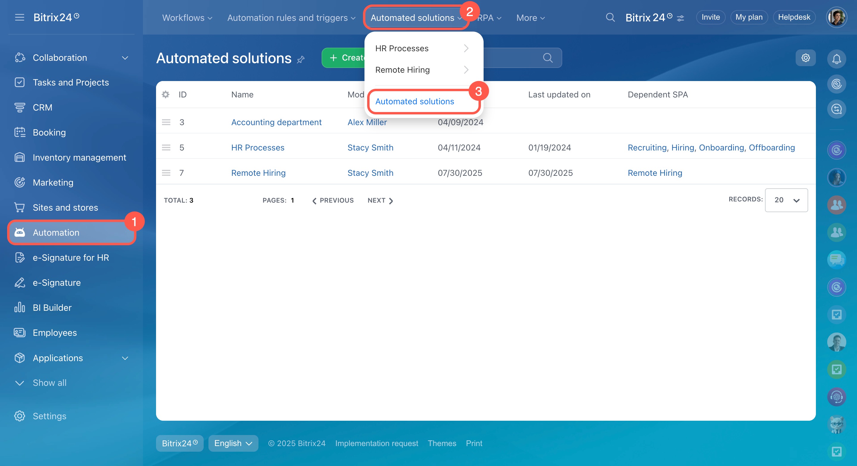 Automated solutions are a separate section for SPA, used to automate any department's work.