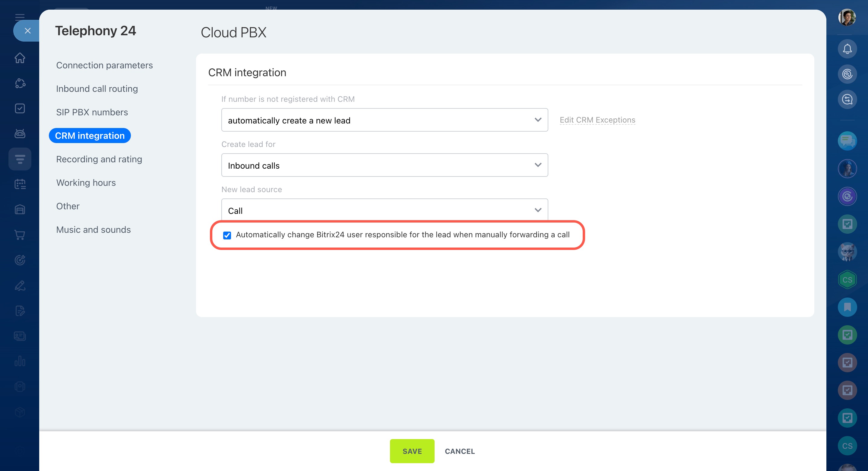 Automatically change Bitrix24 user responsible for the lead when manually forwarding a call