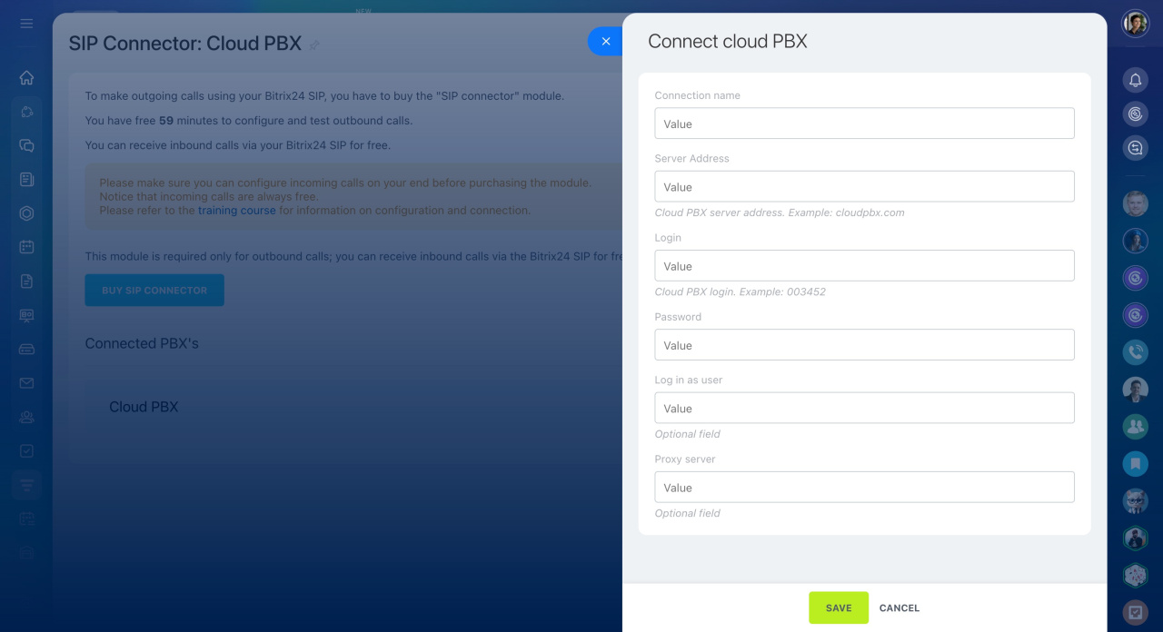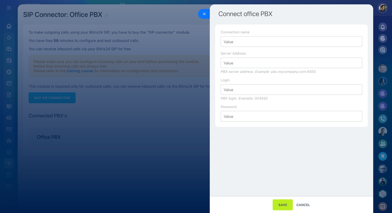 Check the requirements and settings for connecting cloud and office SIP PBXs in Bitrix24.