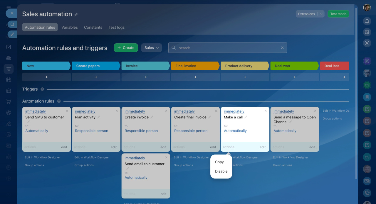 For example, you have an automation rule that sends payment status notifications to the sales department employees. If you find it useful for accounting or delivery department employees too, simply copy this rule for new recipients.