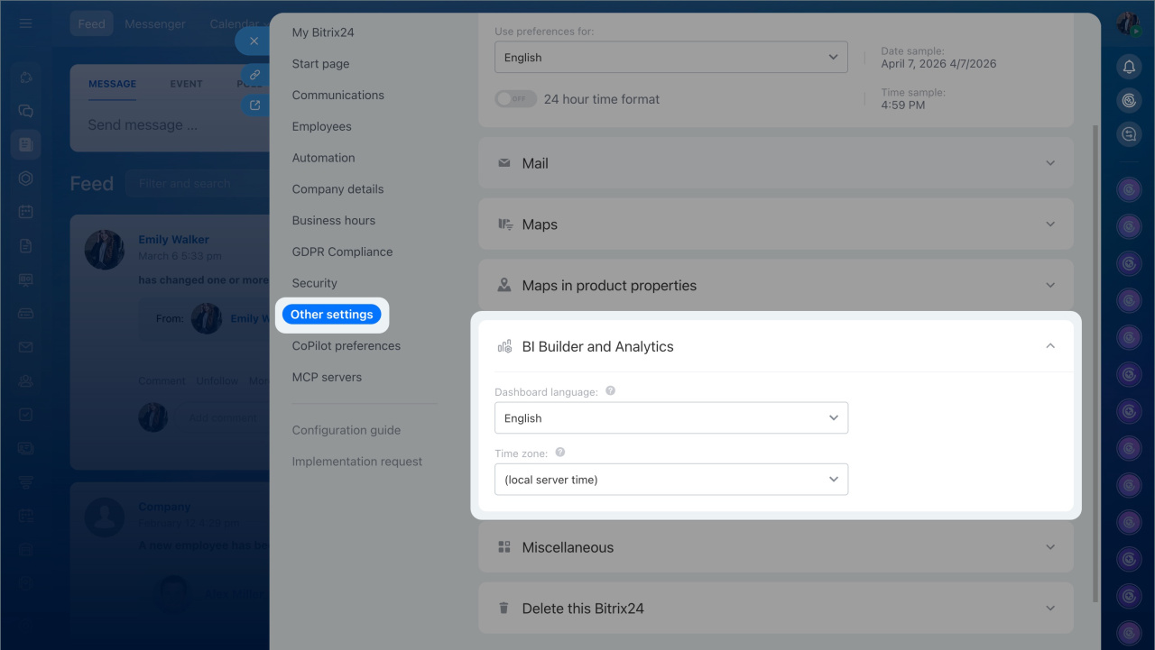 To access BI Builder settings, go to BI Builder > Settings > General parameters.