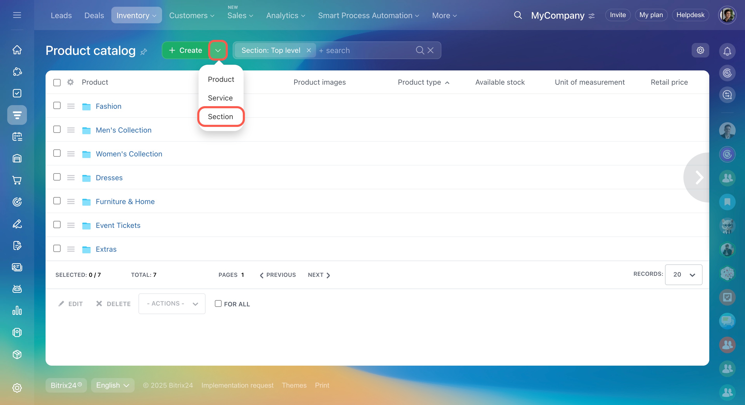 If you have a list of products in the CSV format, it can be imported into Bitrix24.