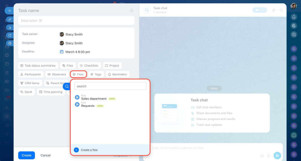 - Click Create task and select Flow in the top menu.