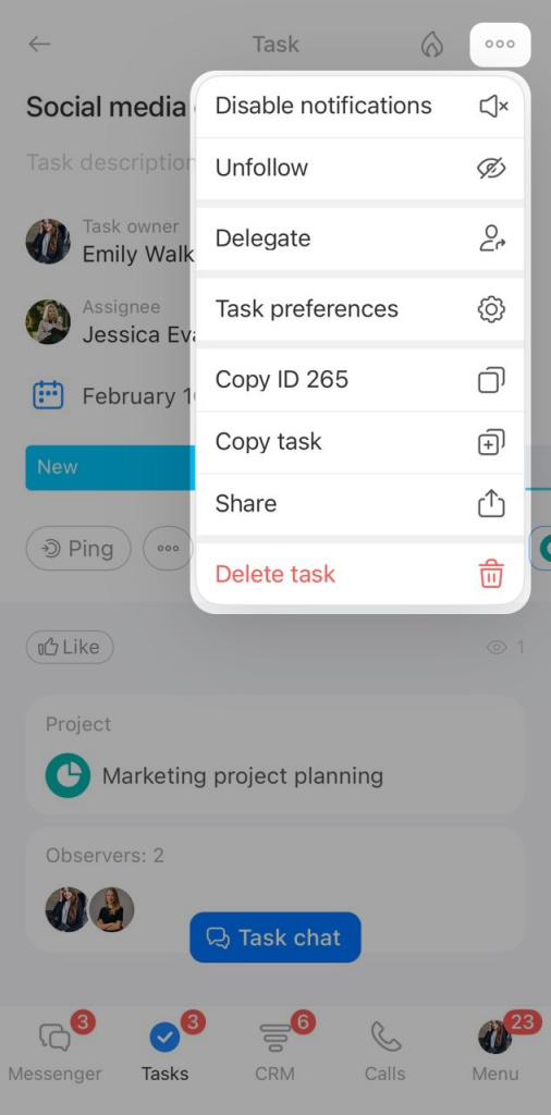 Create and manage Bitrix24 tasks in the mobile app without switching to the web version.