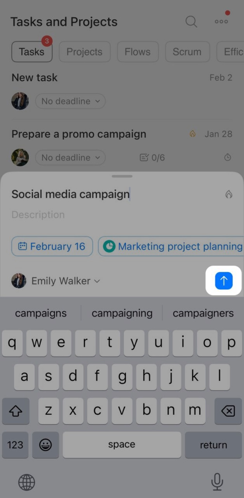 Open a task, tap on the field you want to edit, and make changes. For example, change the deadline or add a file.