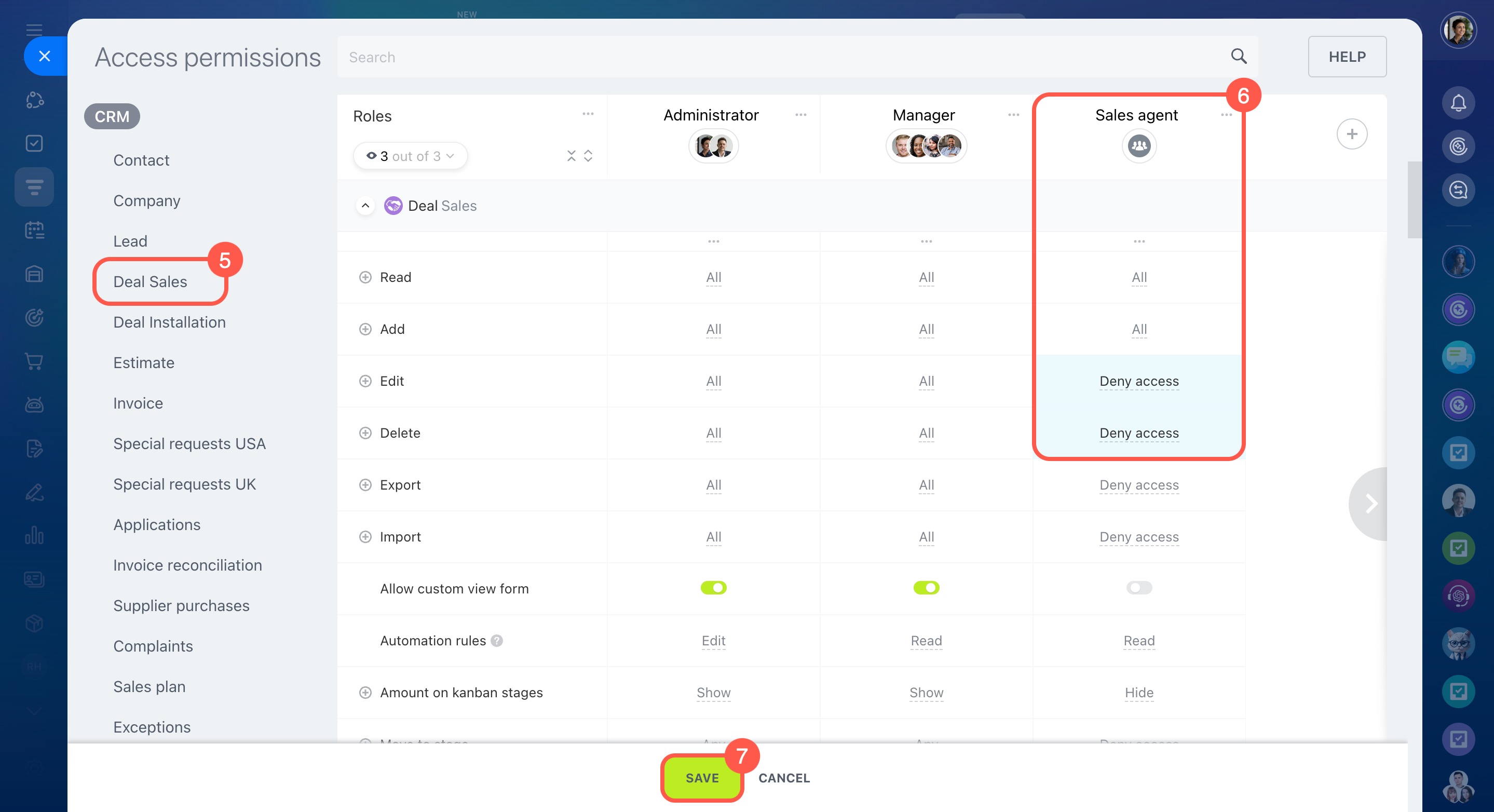 Set access permissions. Only users with access to edit the linked CRM item can edit or complete a CRM activity. For example, if an employee has permission to edit a deal form, they can also edit linked activities.