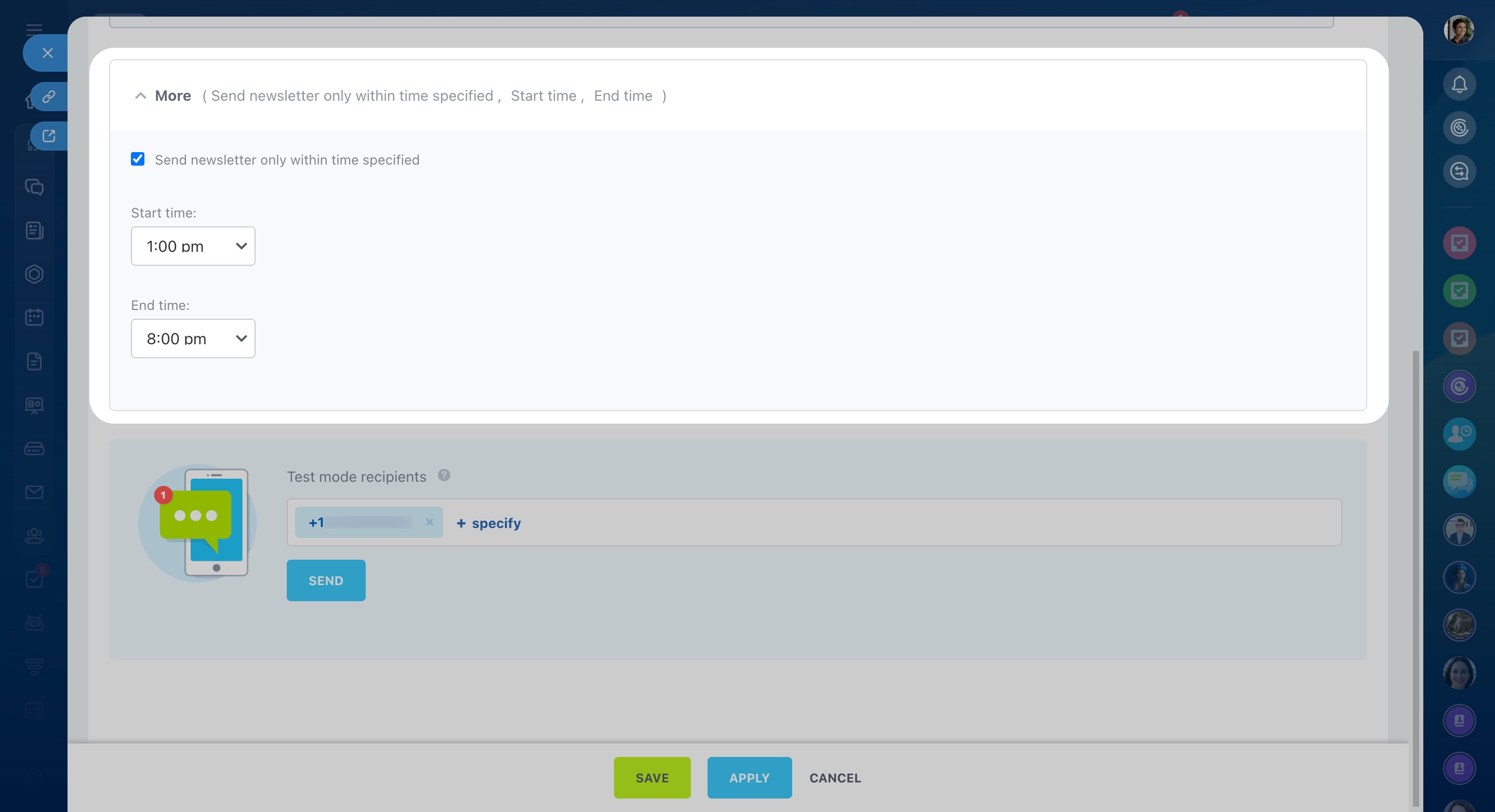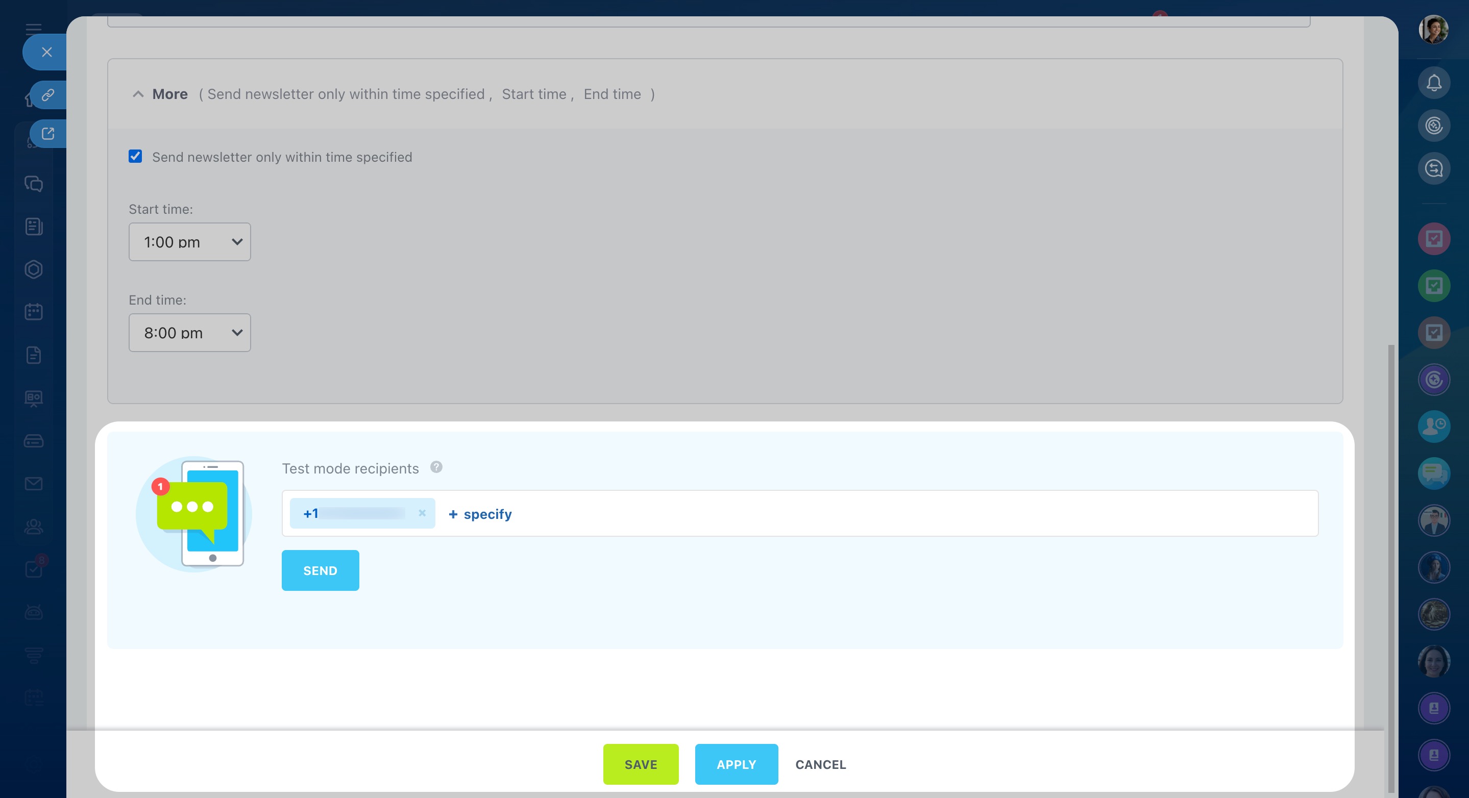 Enter the number to which the test newsletter will be sent. Then click Save.