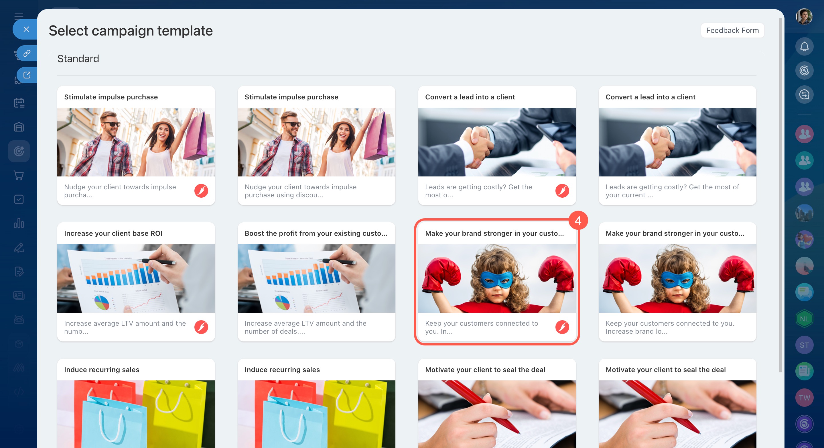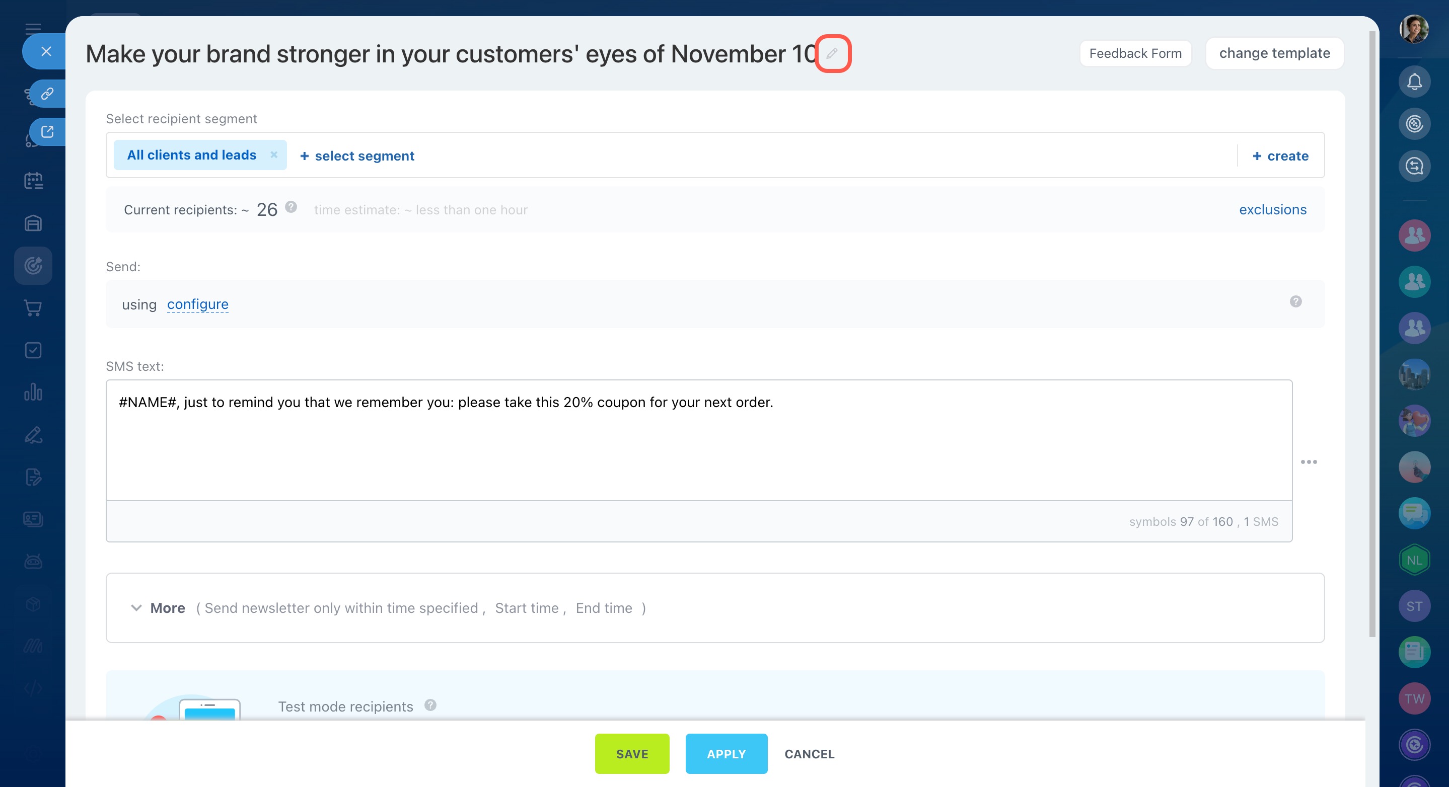 - Change a campaign name to quickly find it in the list. Click on the pencil icon and specify a new name. This name will be visible only for Bitrix24 users.