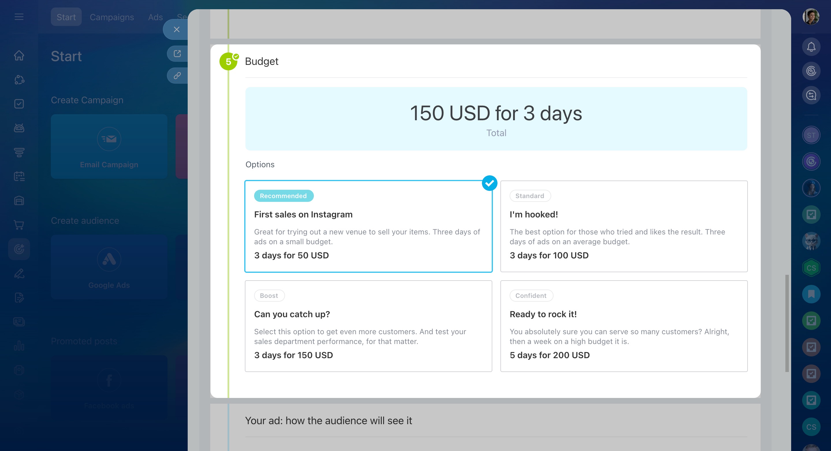 Select the budget for your ad.