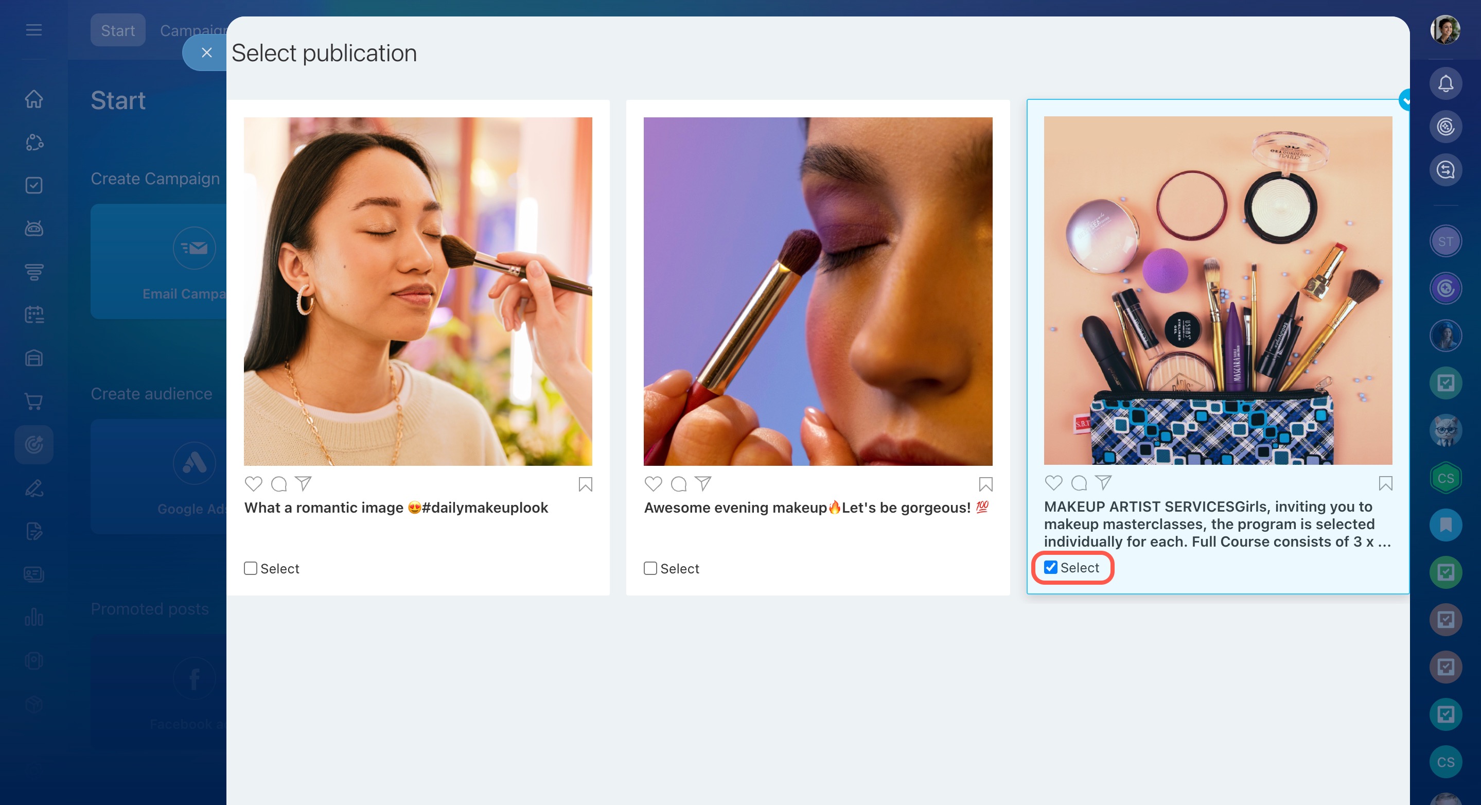 Select a post on your Instagram to create an ad.