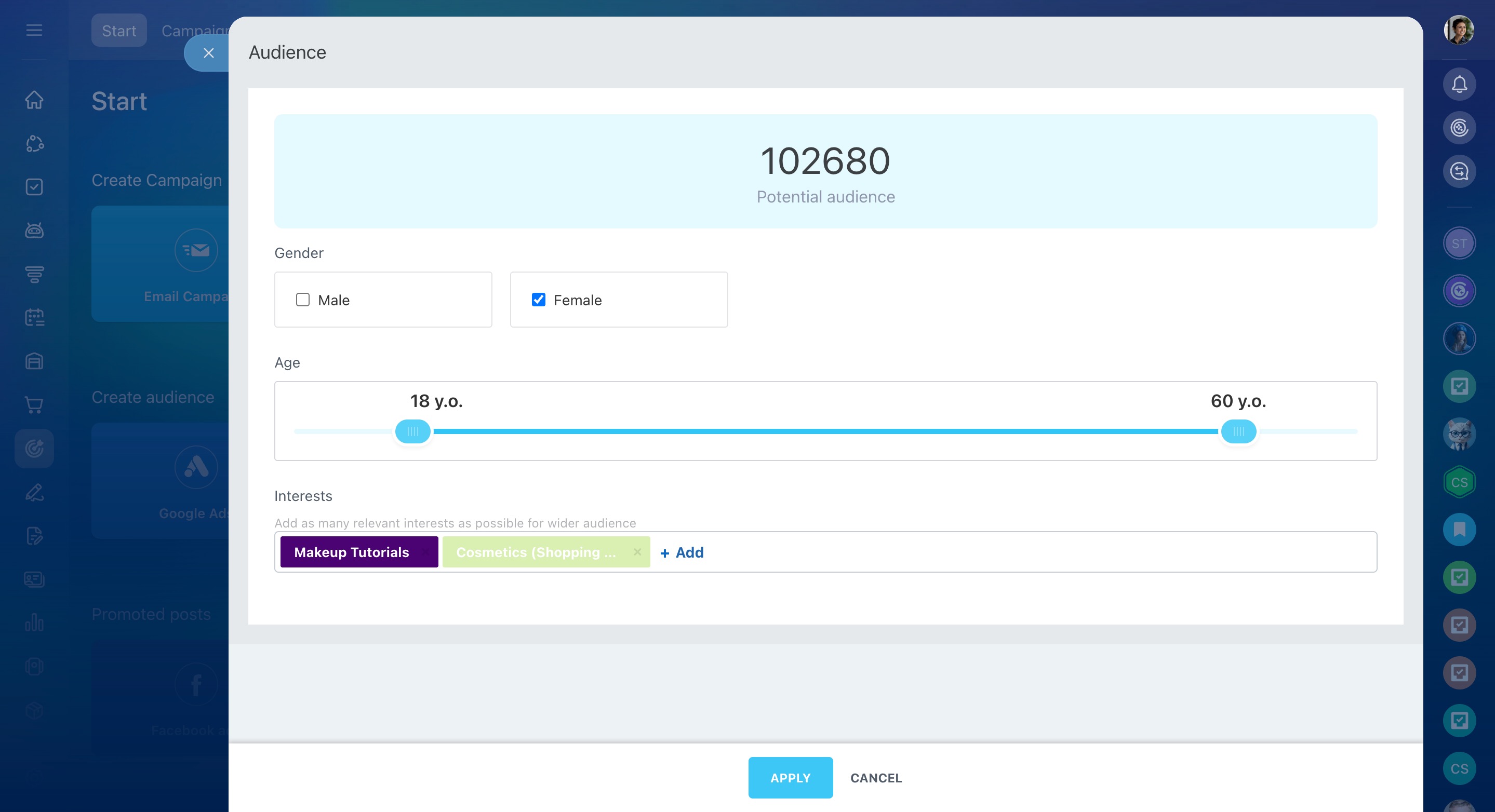 Specify the location of potential customers to better target your audience.