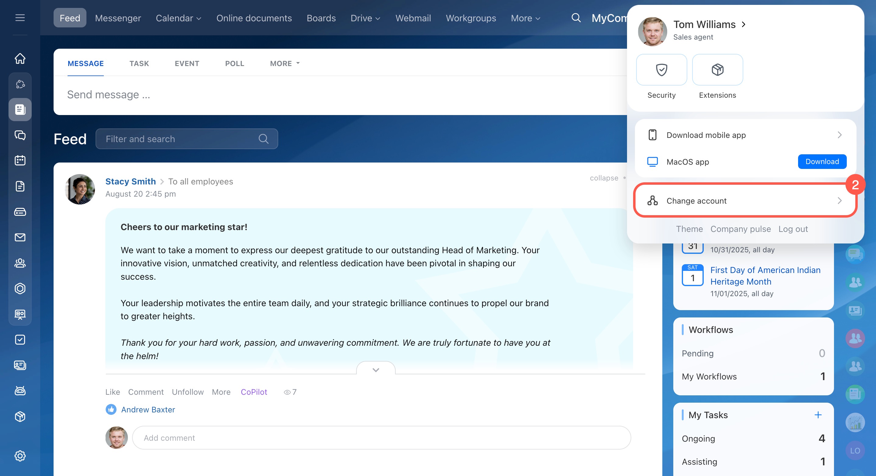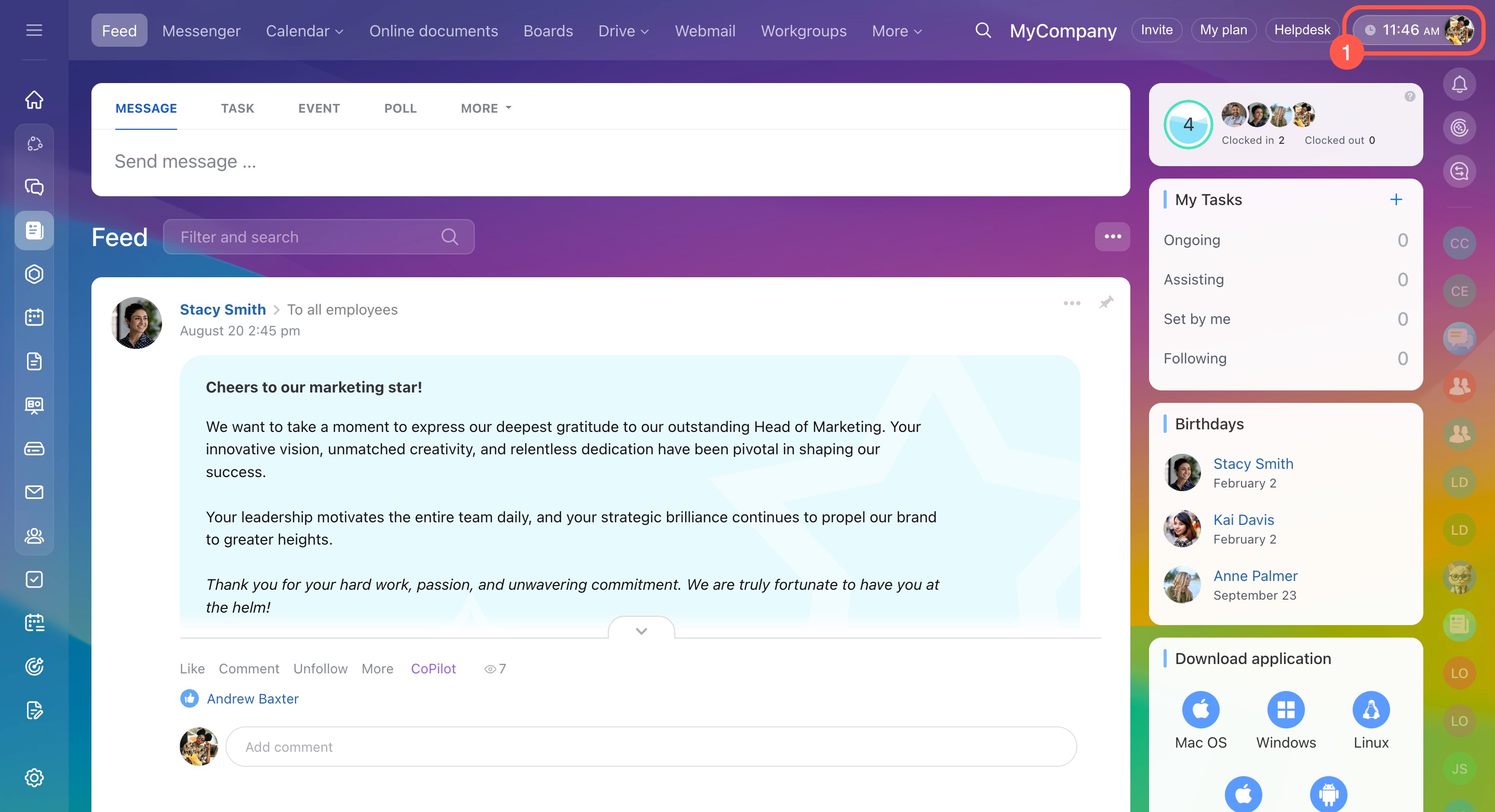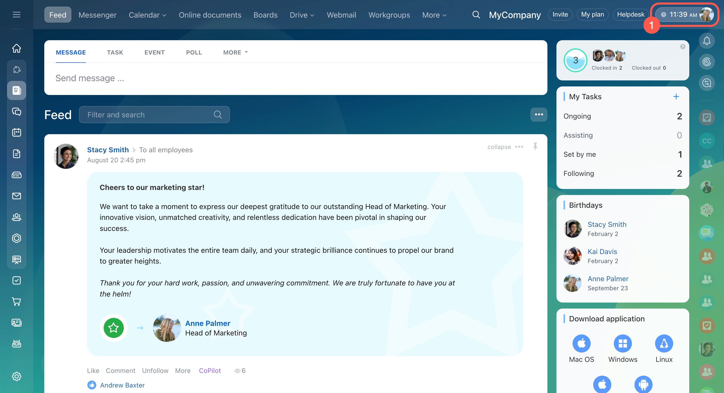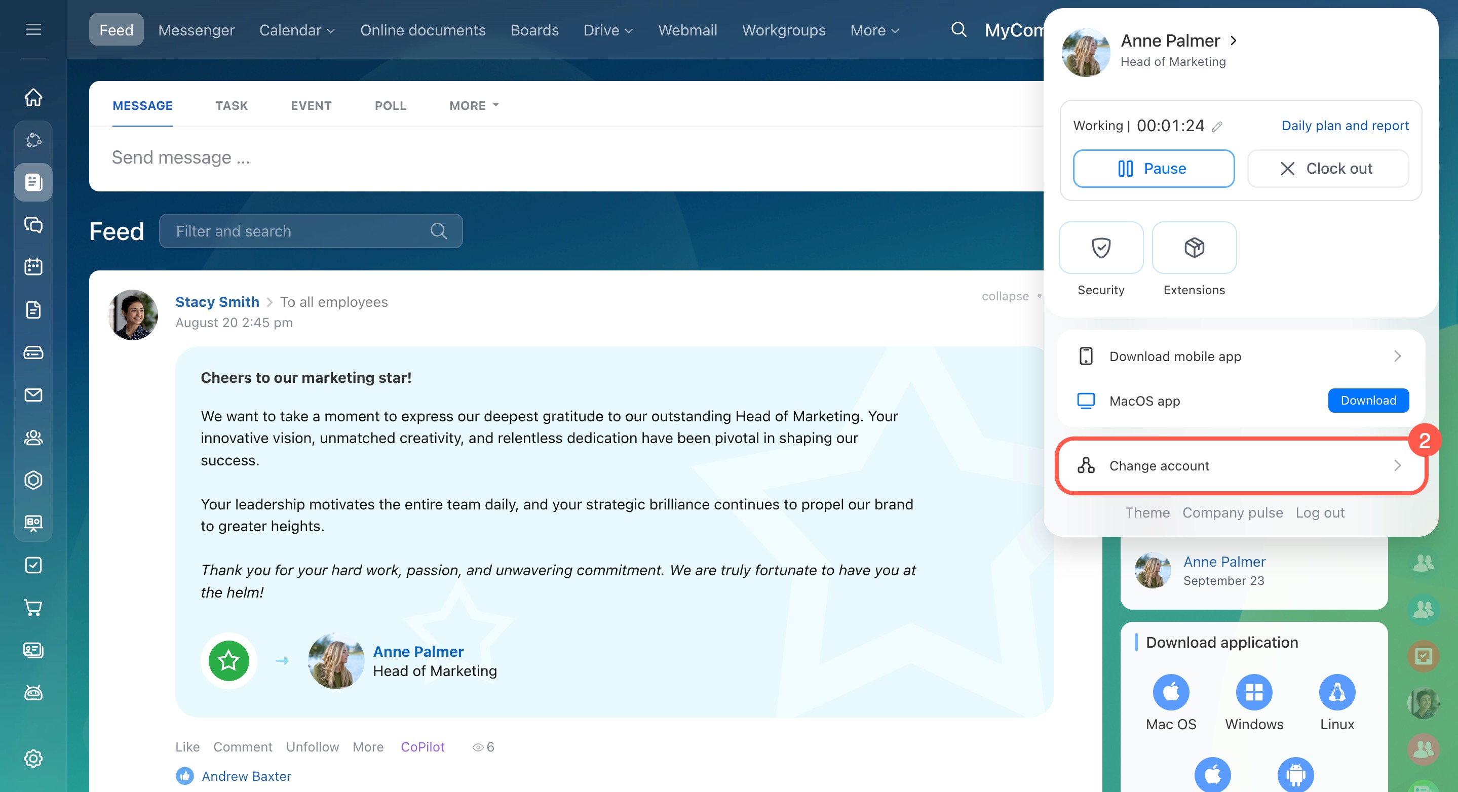 Bitrix24 allows you to easily change your login, password, and link a different social network to your account, all from the Bitrix24 Network profile page.