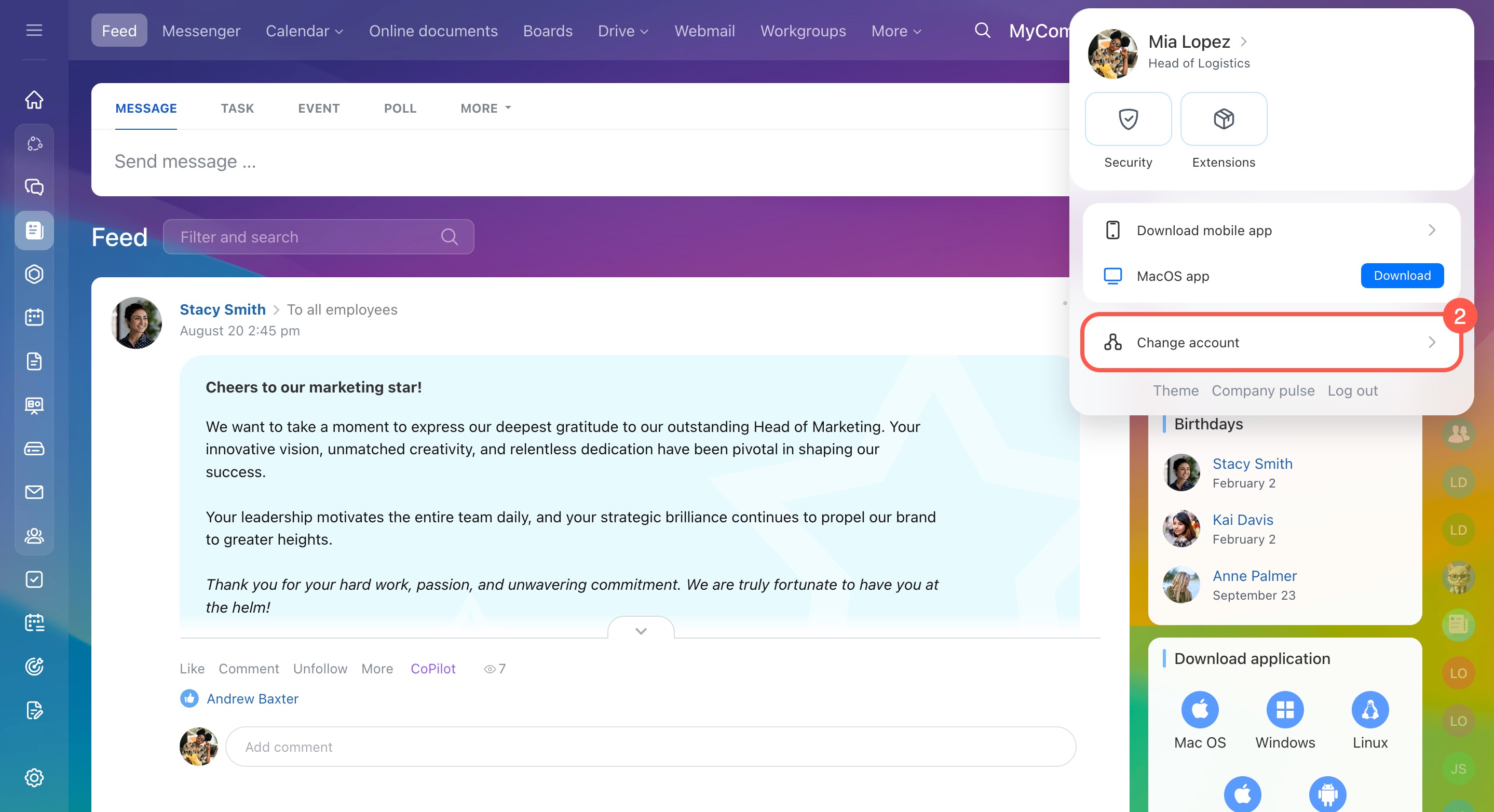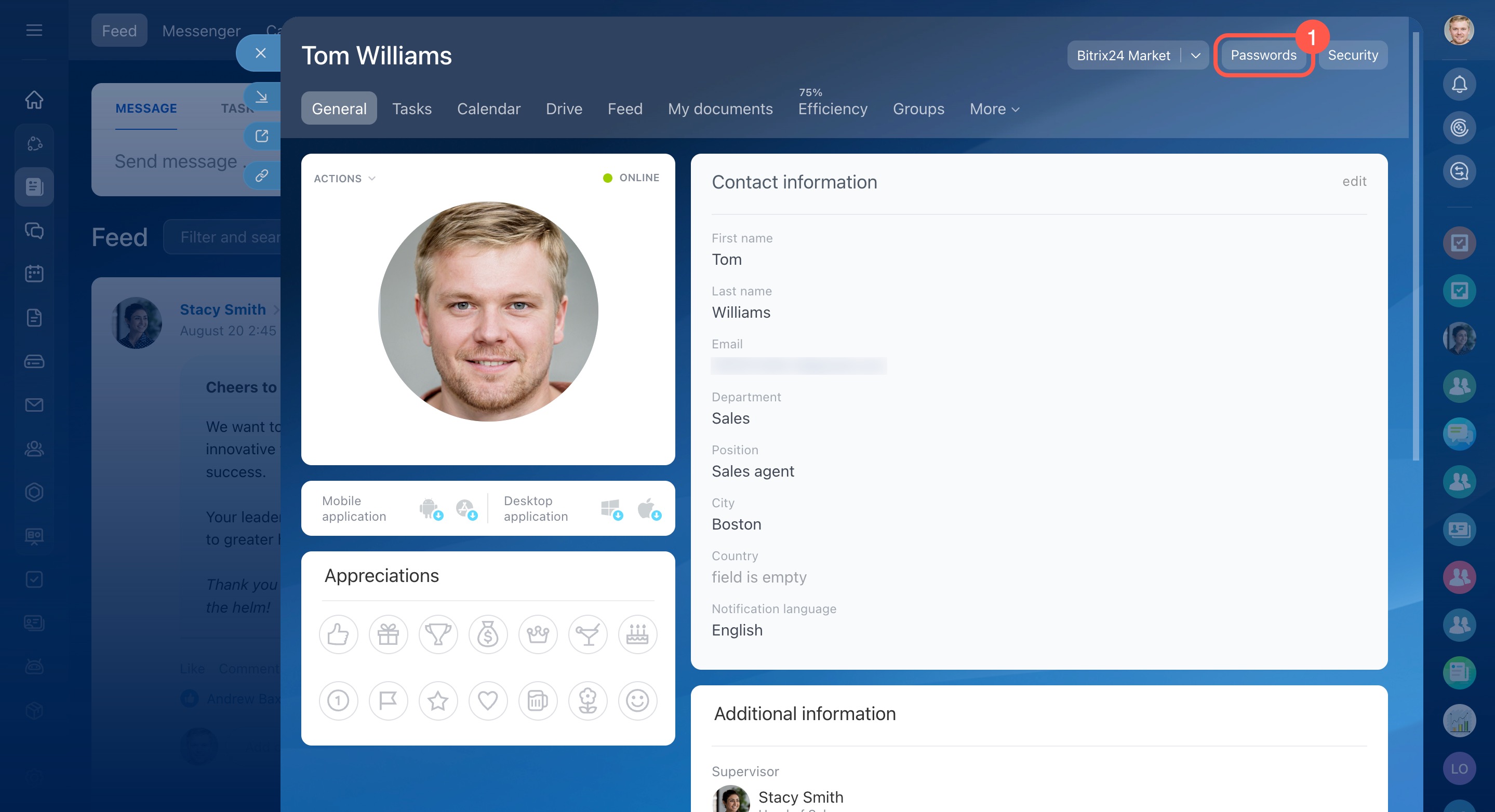 You can easily update your login and password or connect a different social network to your Bitrix24 account. This is particularly helpful if you've changed your phone number or no longer use your email. Just update your details on the Bitrix24 Network profile page.
