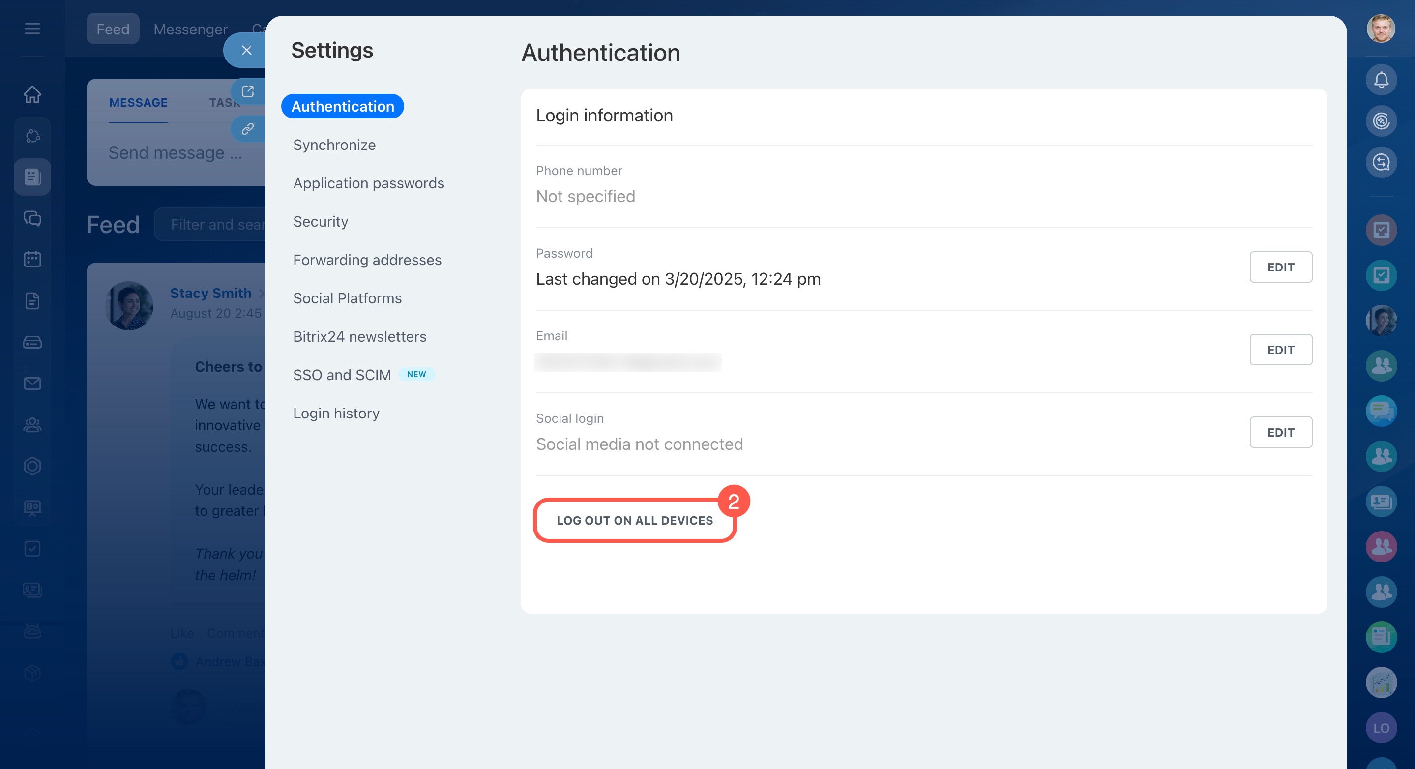 After updating your password, confirm your access to Bitrix24 by logging in through an incognito window in your browser with the new password.