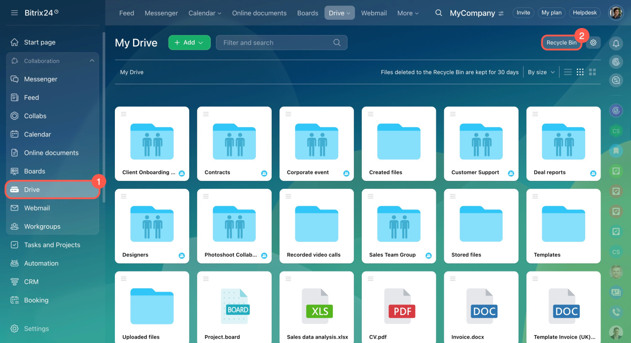 To recover your data, submit a request to Bitrix24 Support. Before contacting our team, check if the data can be recovered from the recycle bin.