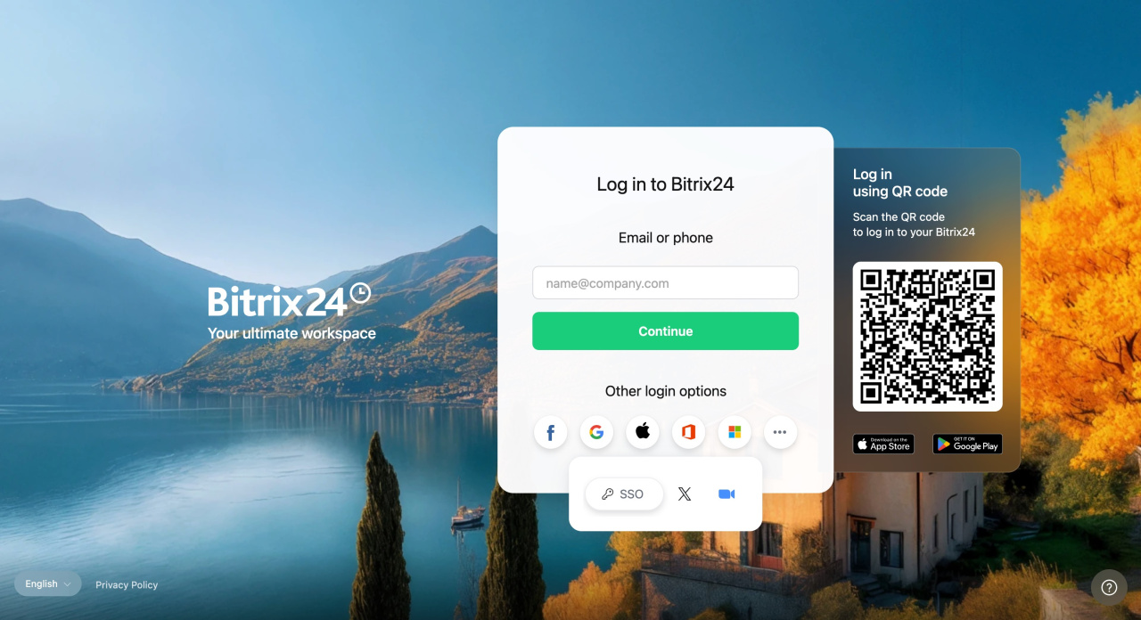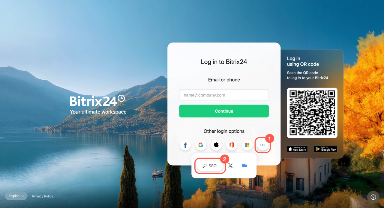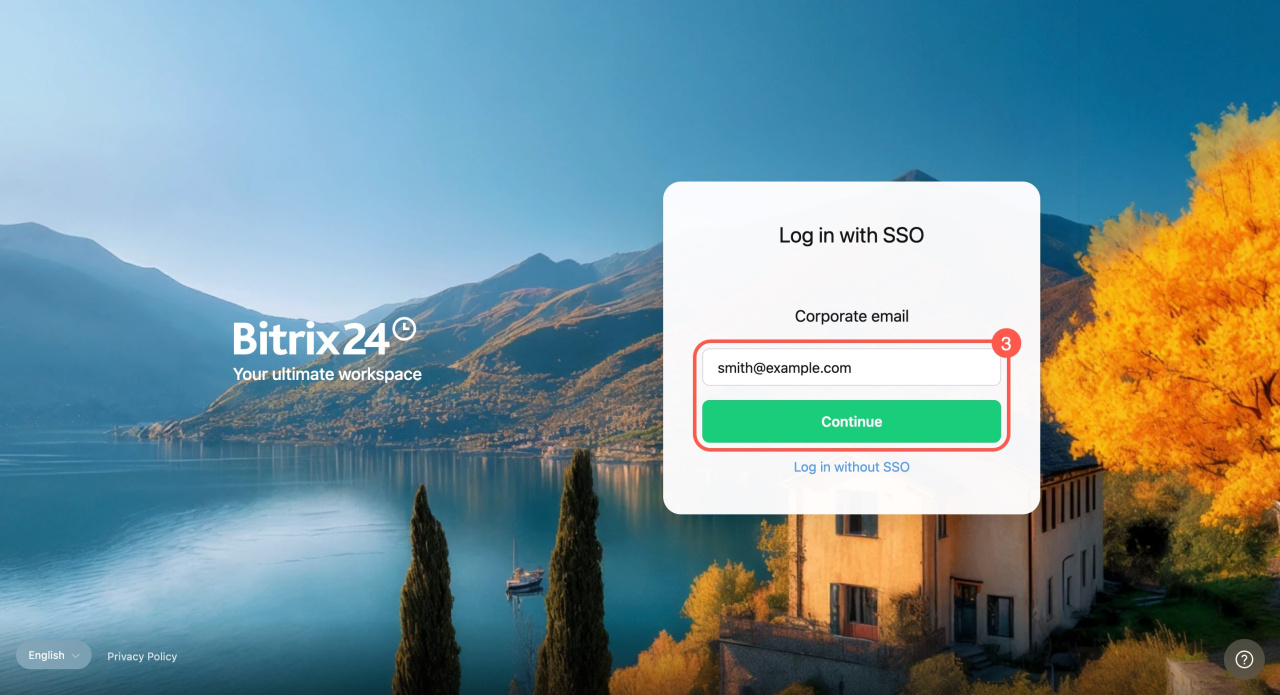 Log in using Single Sign-On. This method allows users to log in to Bitrix24 without entering a password.