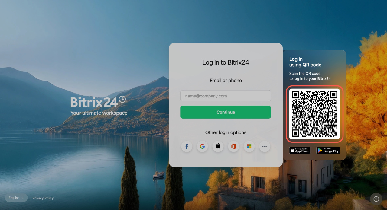 - You can log in using a QR code if you are already logged in to the Bitrix24 mobile app.