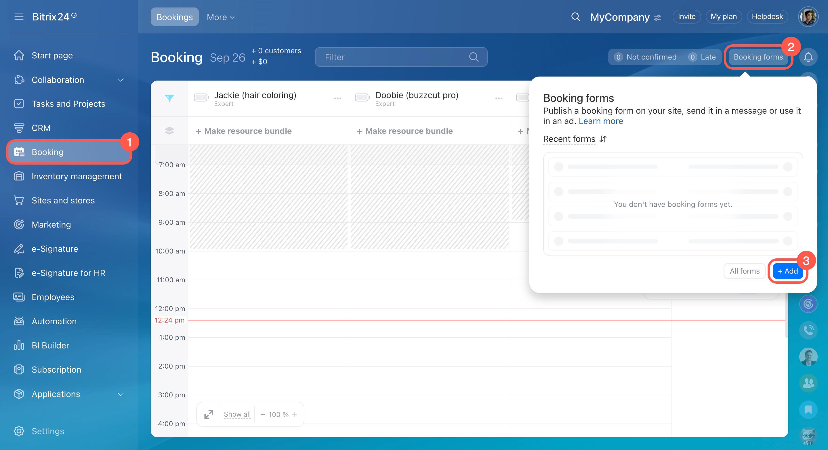 - In Bitrix24, you can configure a form for customers to select a convenient time and book services.