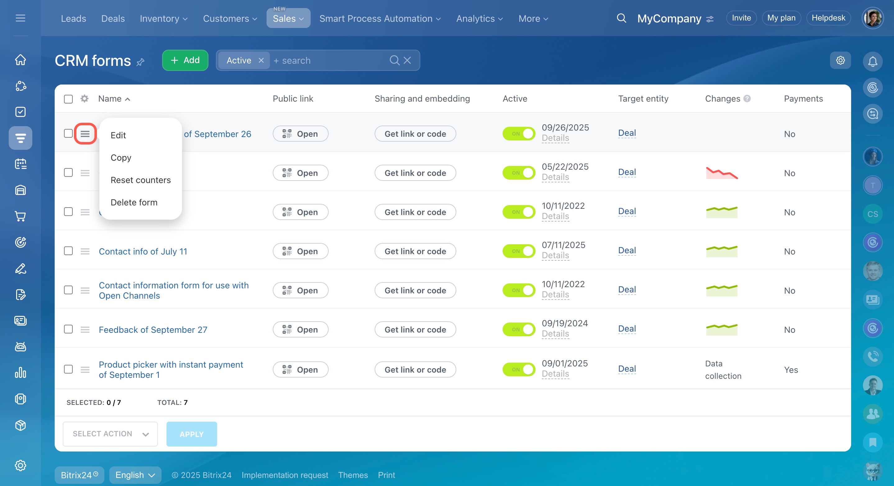 - You can place the form on a site, in social networks, or send it to a customer via messenger.