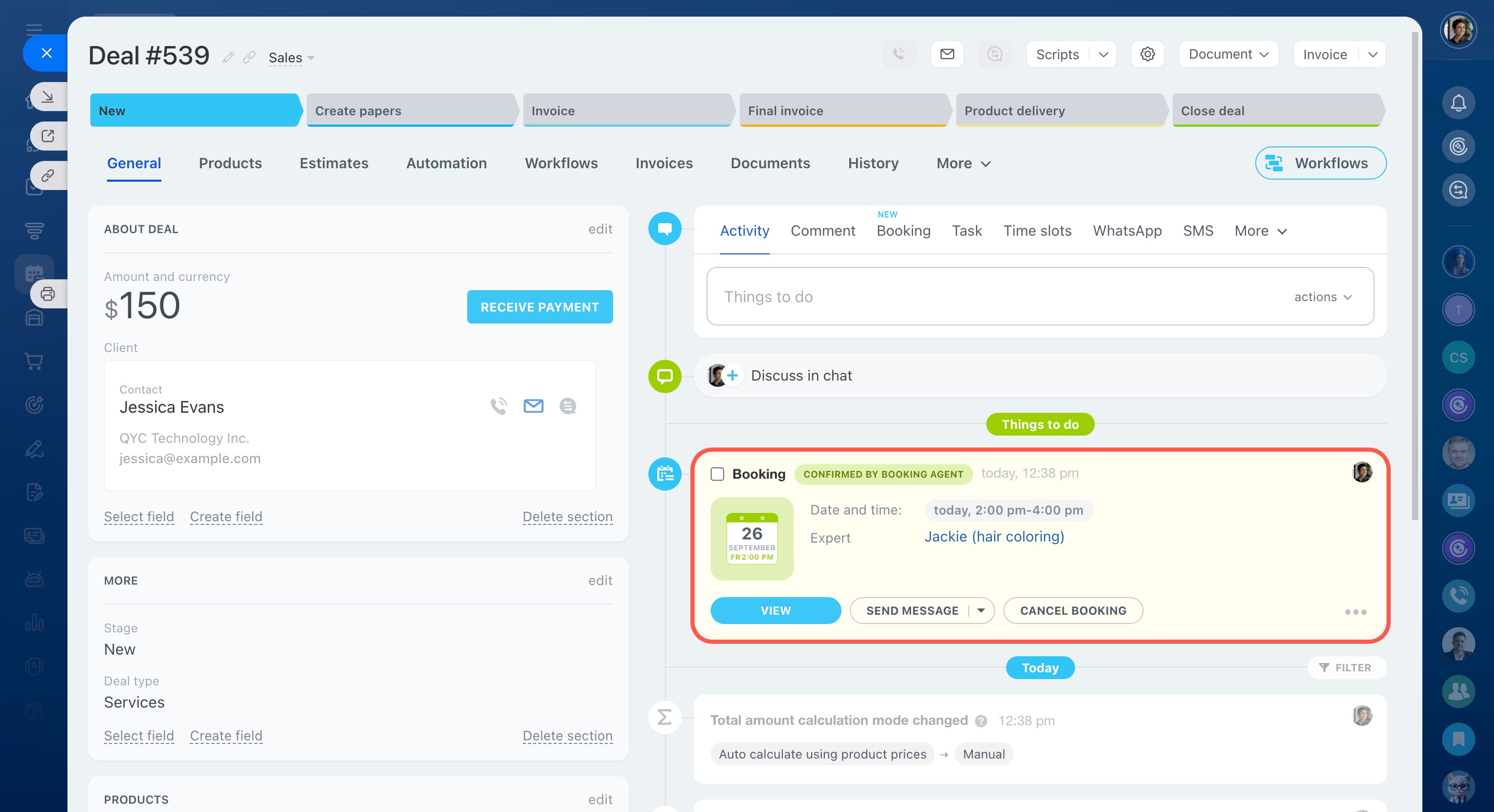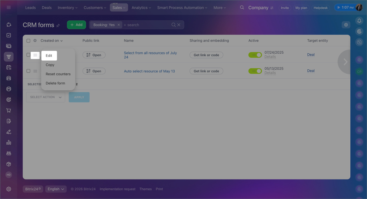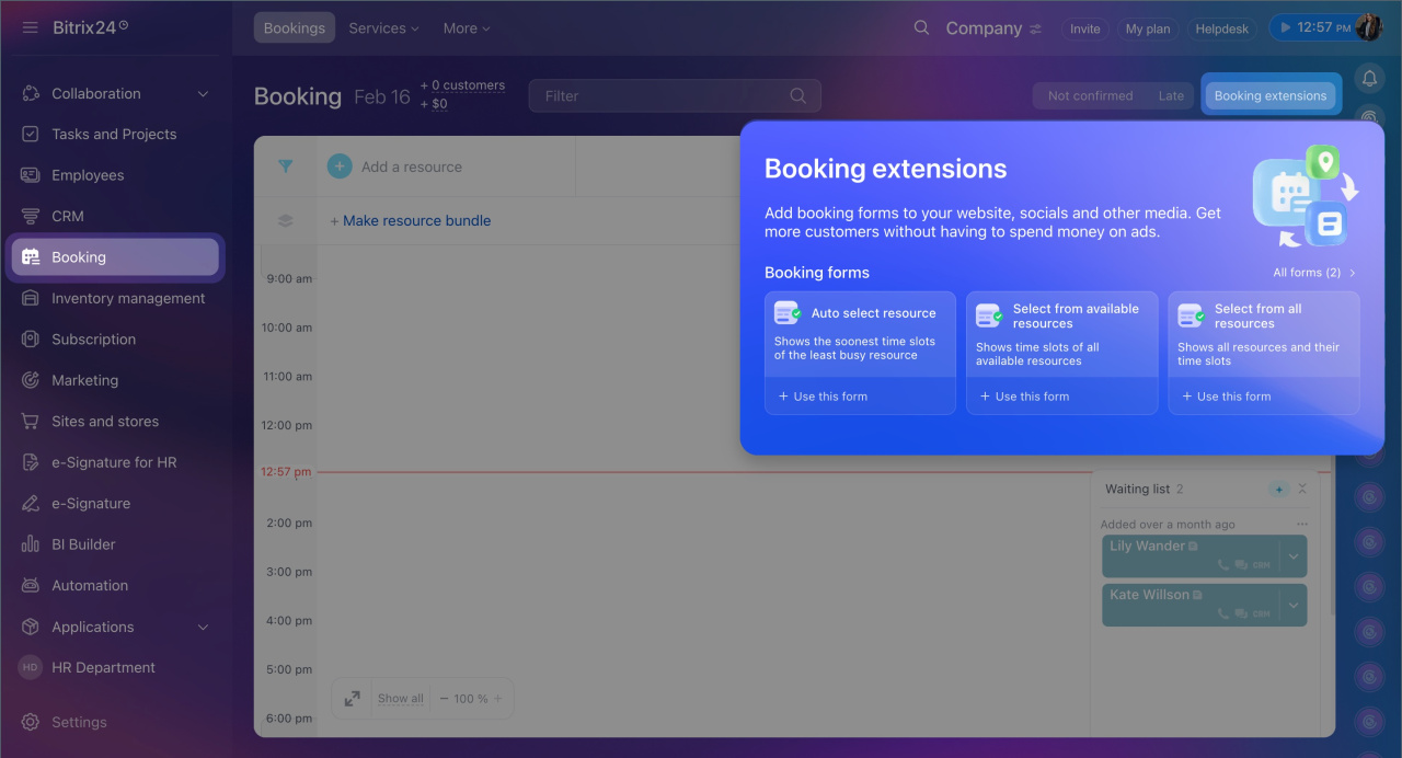 In Bitrix24, you can configure a booking form for customers to select a convenient time and book services. The form helps: