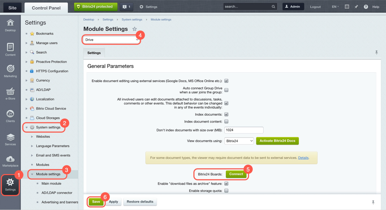 To use boards in the Bitrix24 On-Premise version, you need to enable them.