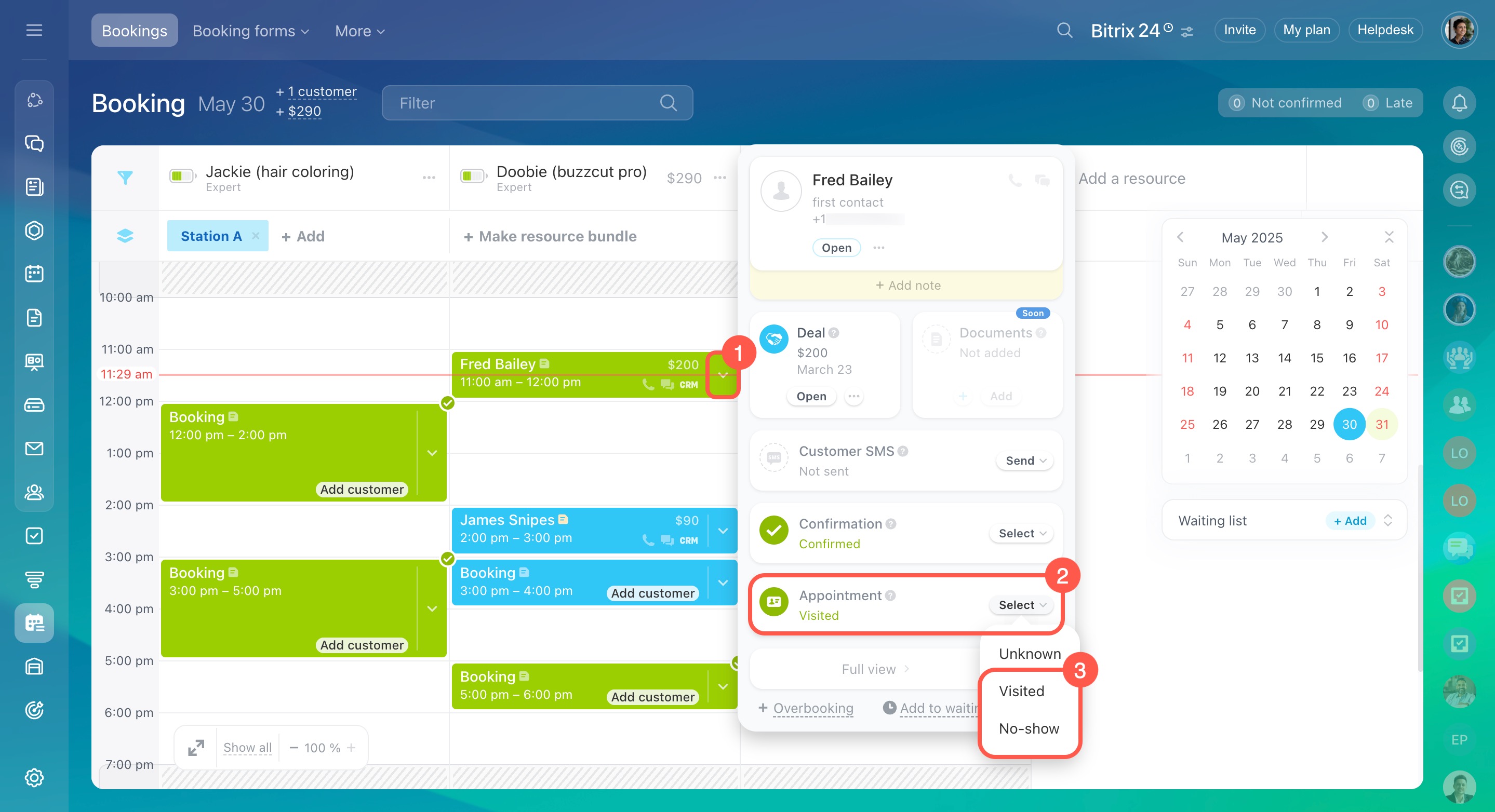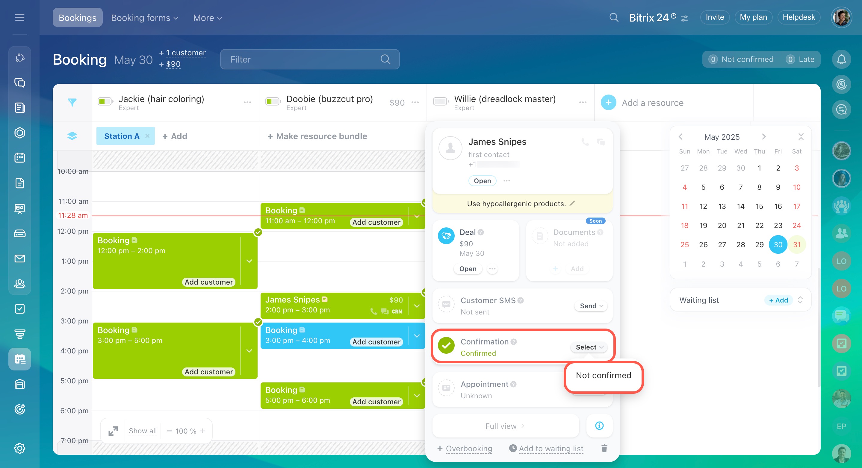 When the client confirms the booking using a link from the message, it will be automatically updated in Bitrix24.