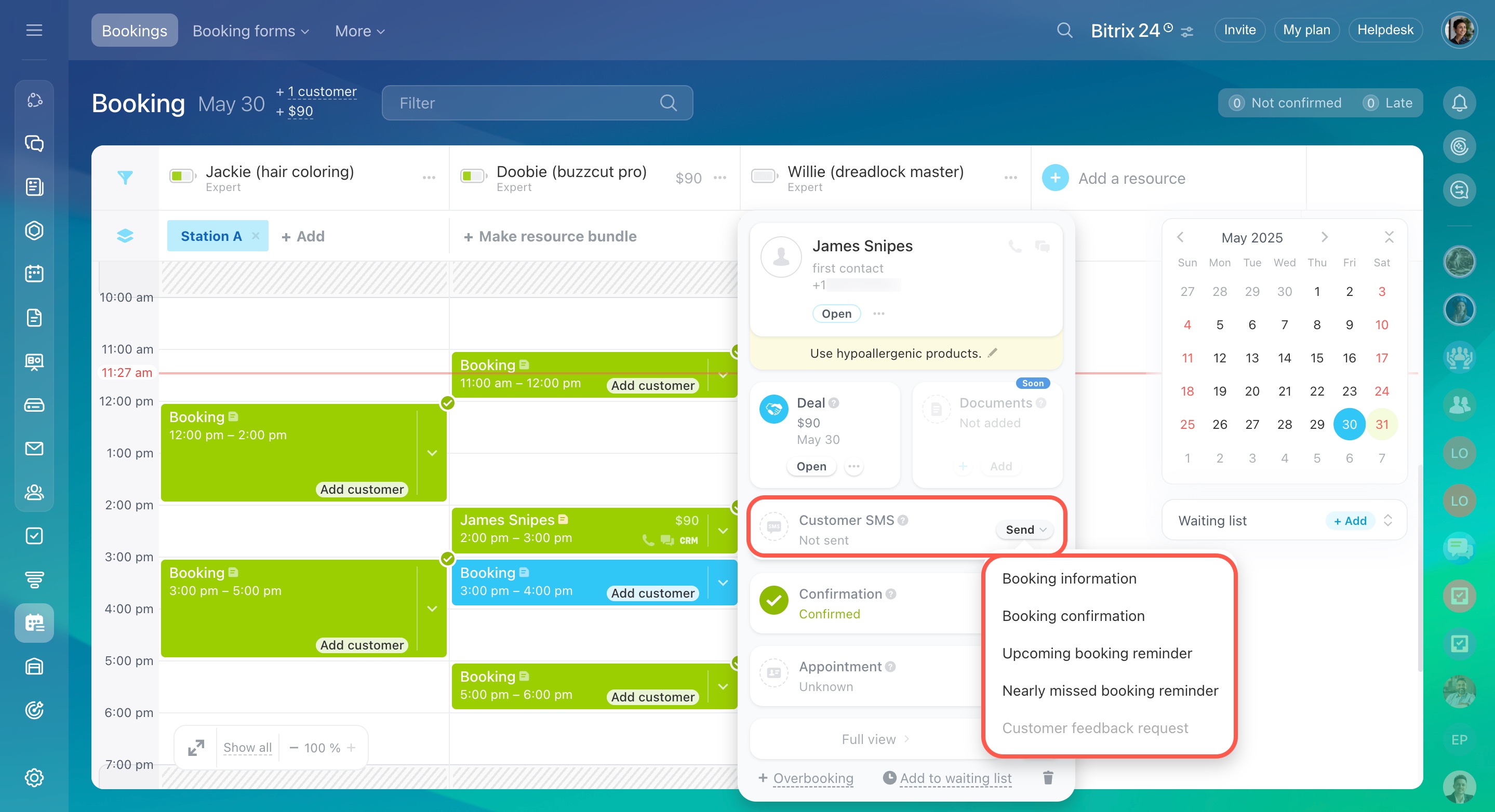 Bitrix24 Booking is a tool for customers to make appointments with specialists, rent rooms and equipment.