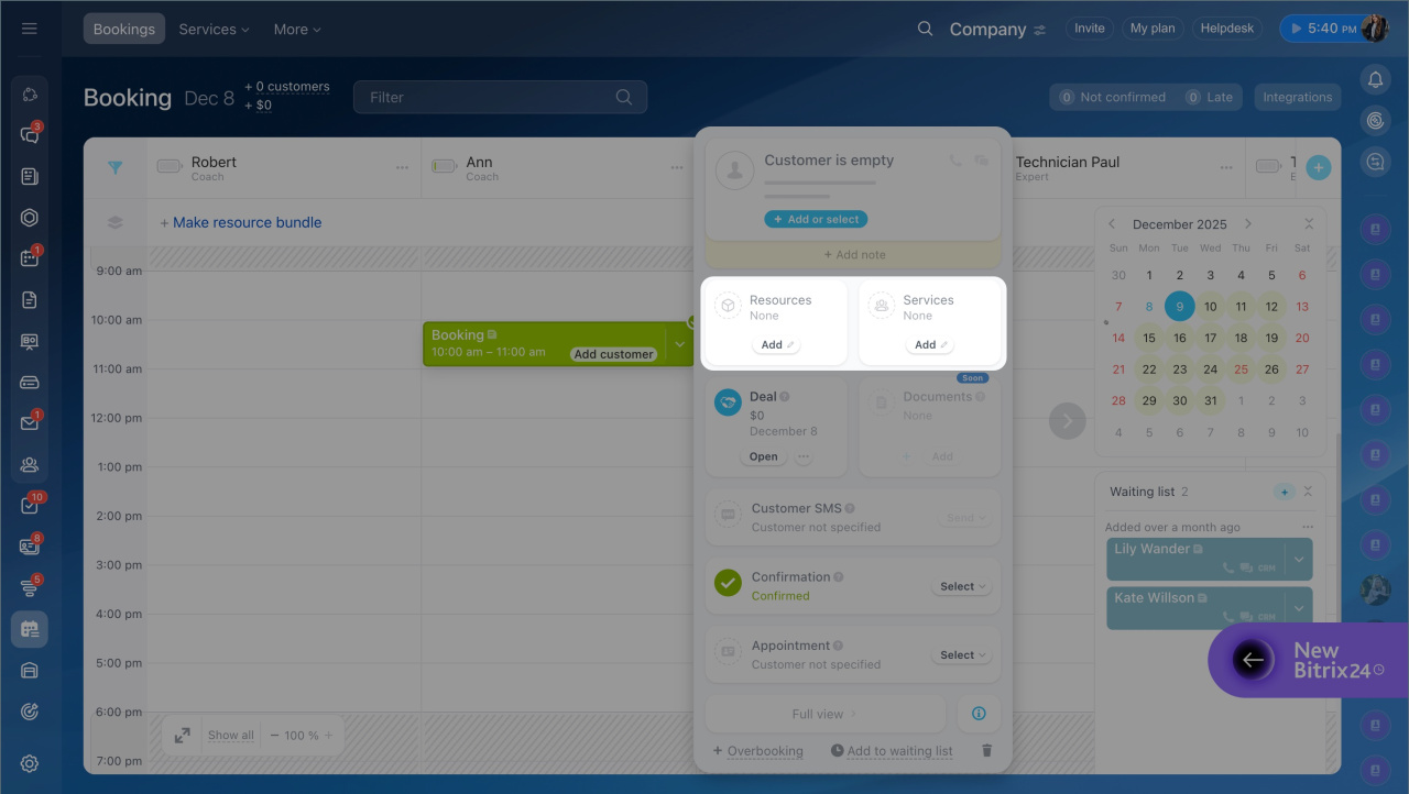 FAQ: Booking Add a resource to the Booking section Booking in CRM Create a resource booking form Bitrix24 Booking: put a client on the waiting list Booking: Getting started Booking: Customer message templates