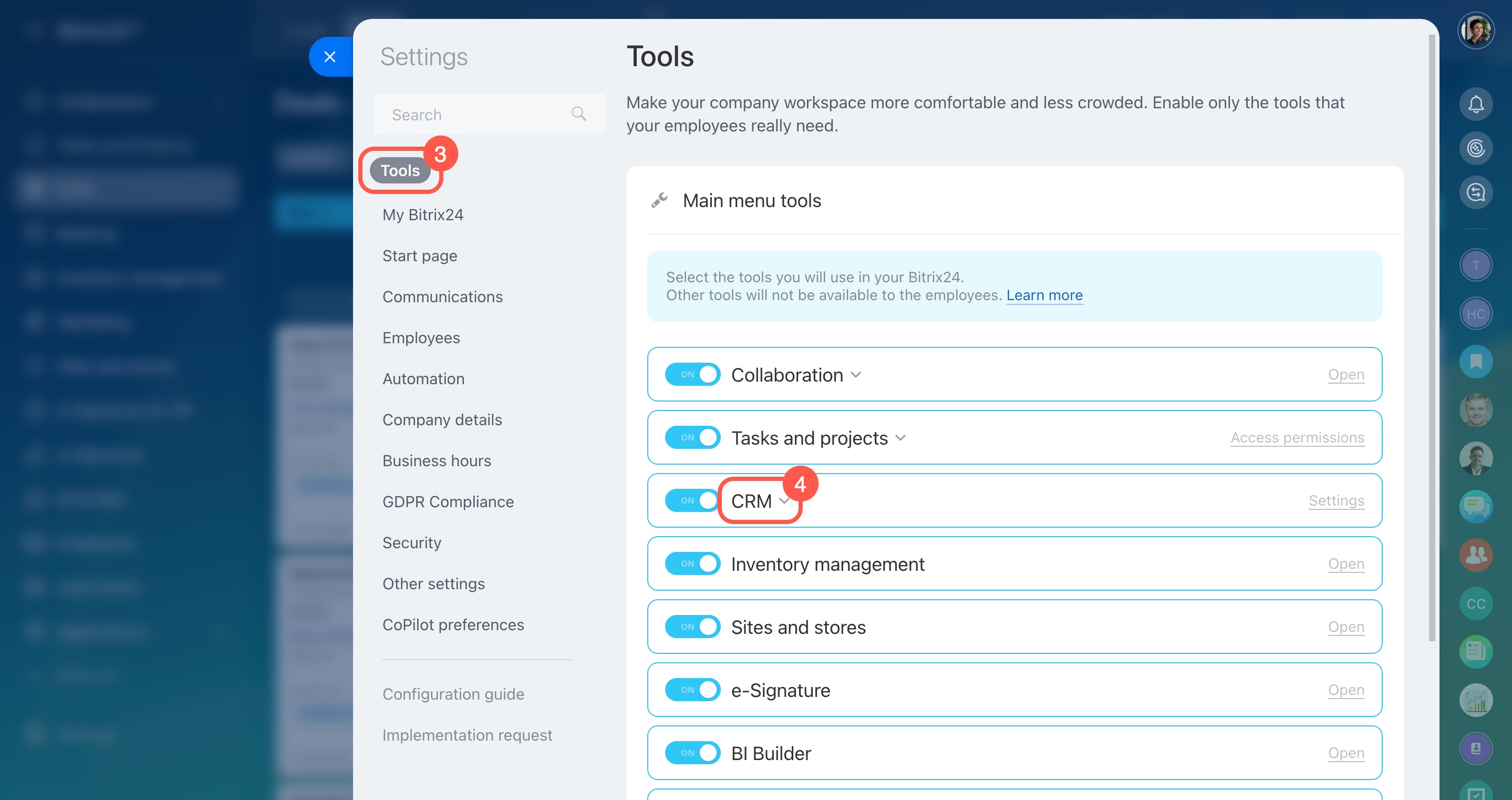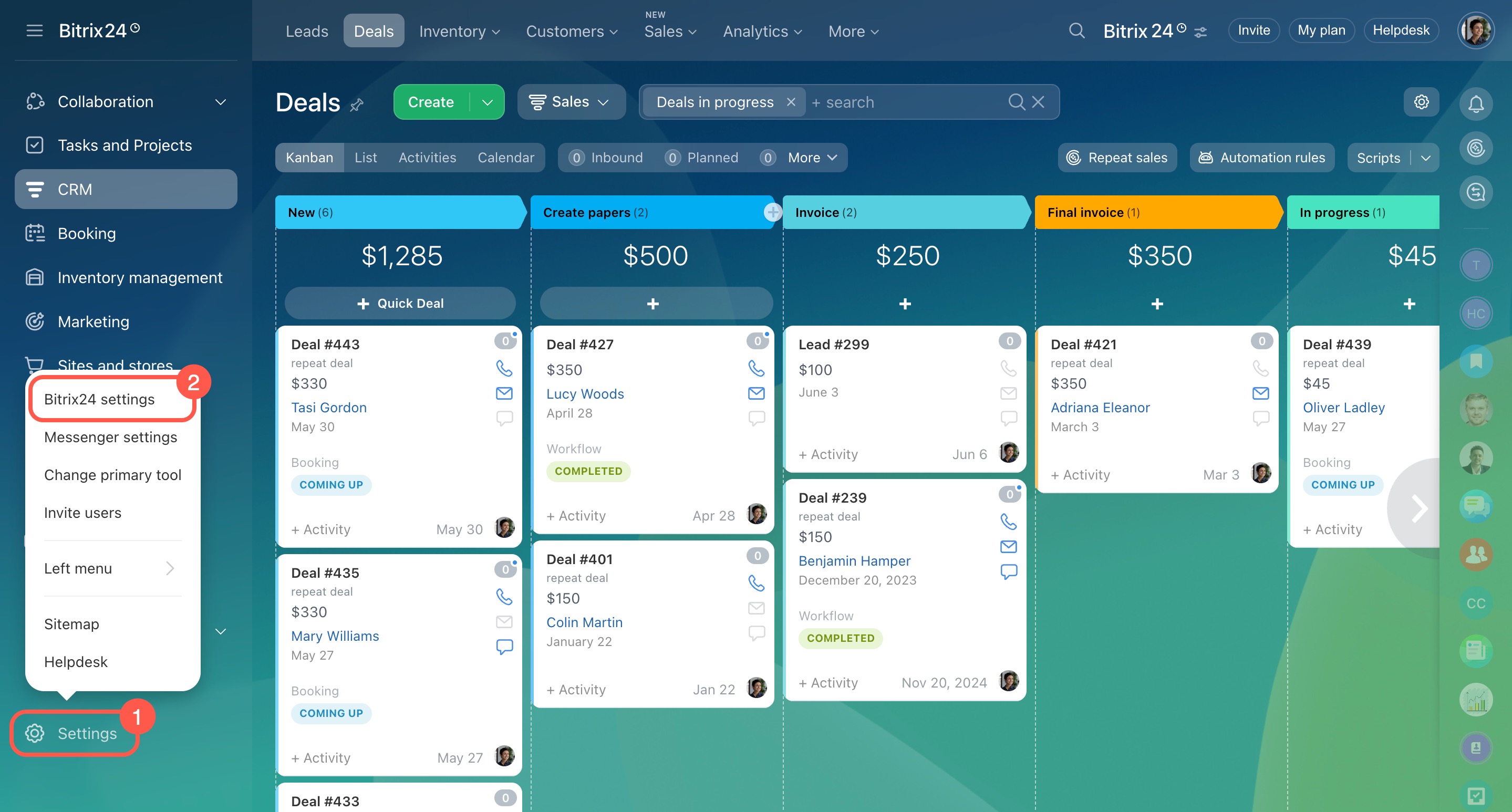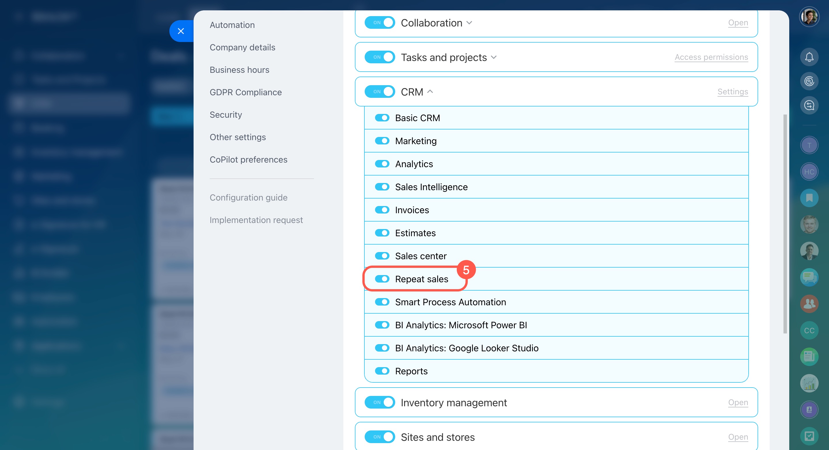 Bitrix24 administrators can also manage repeat sales in Bitrix24 settings. Here's how: