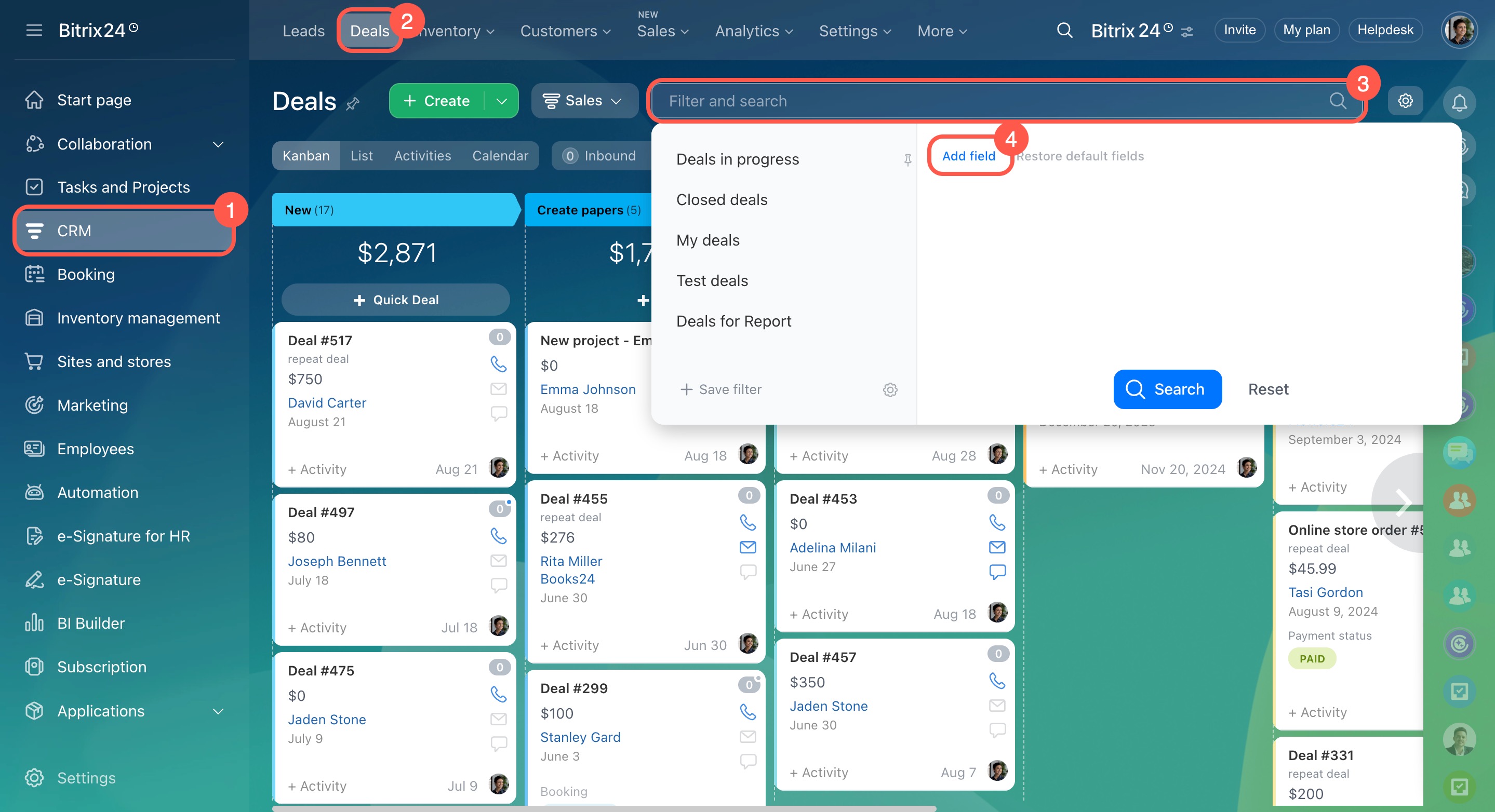 The more accurate the data in CRM, the better repeat sales work. Complete customer and deal forms in detail, set up sales pipelines, use AI to transcribe calls, keep your product catalog up to date, and note agreements in the CRM item forms.