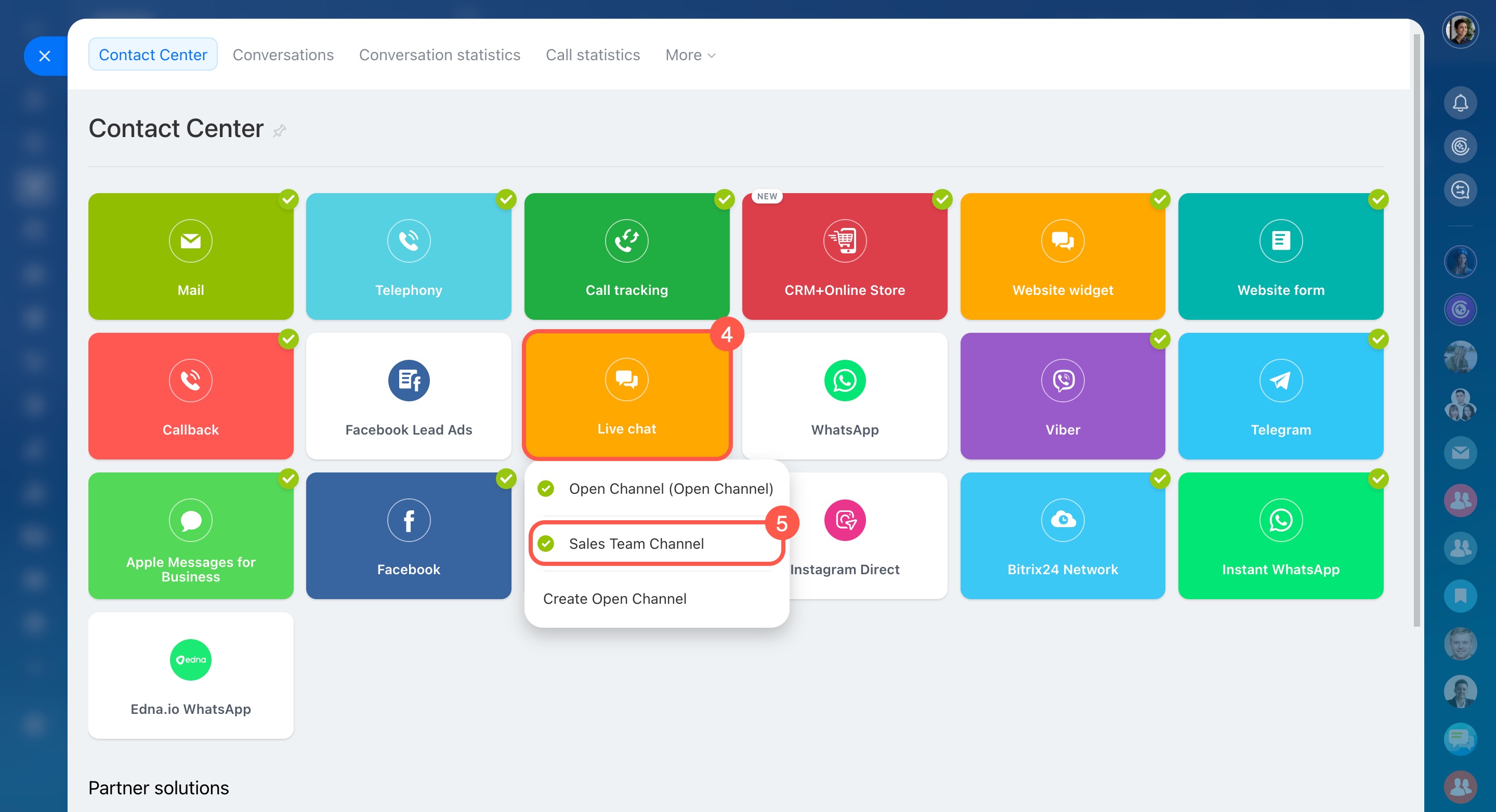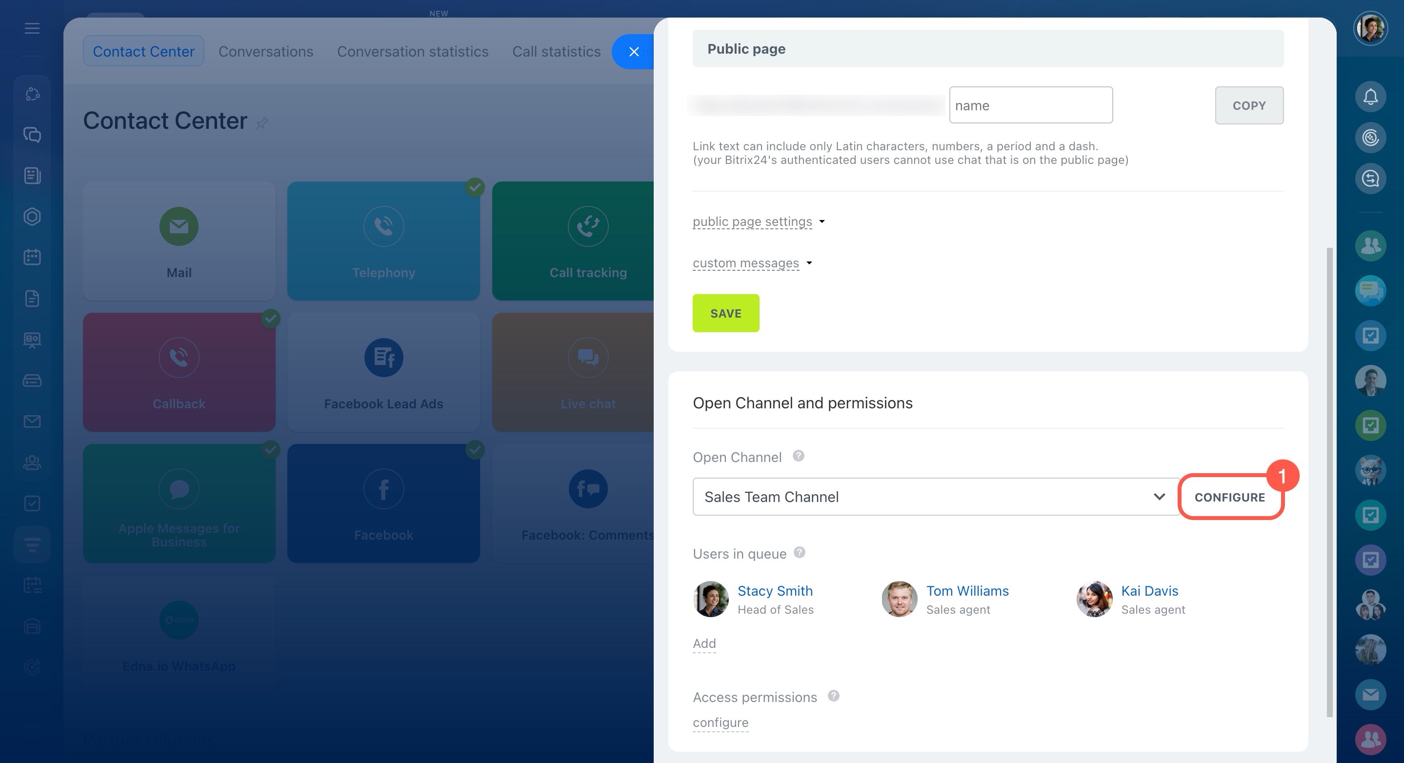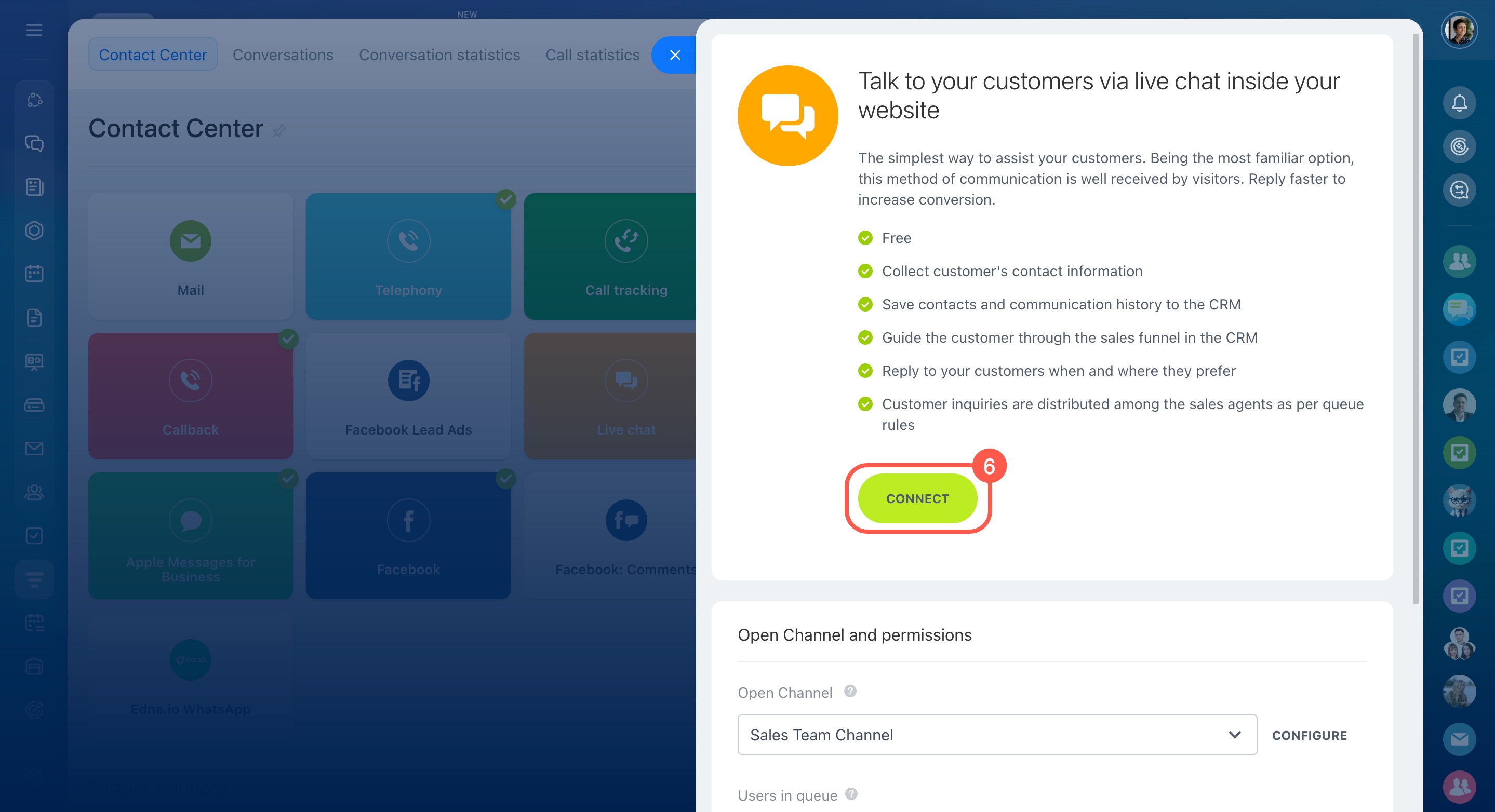 Only Bitrix24 administrators and employees with administrator rights in Open Channels can enable the CRM form in the live chat.