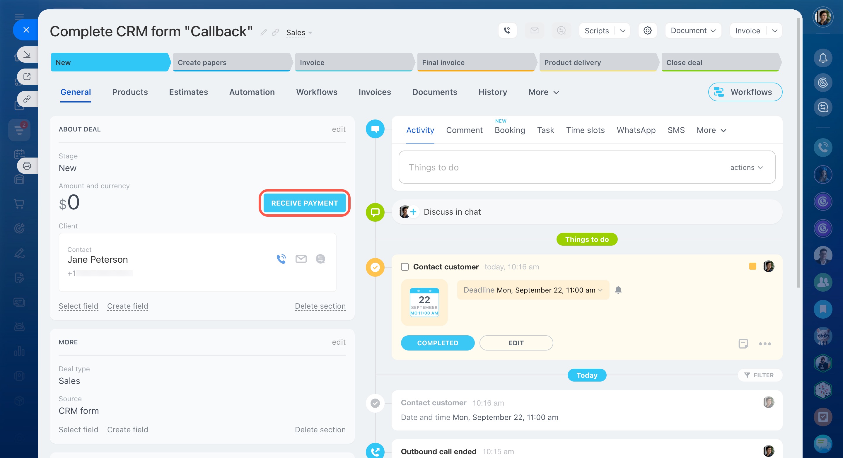 When the customer places an order, you’ll see the chosen products in the deal timeline.