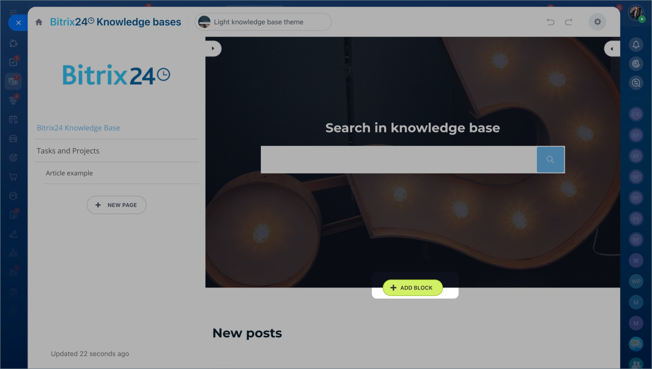 - Then you can add blocks with texts, images, and video to the knowledge base pages.